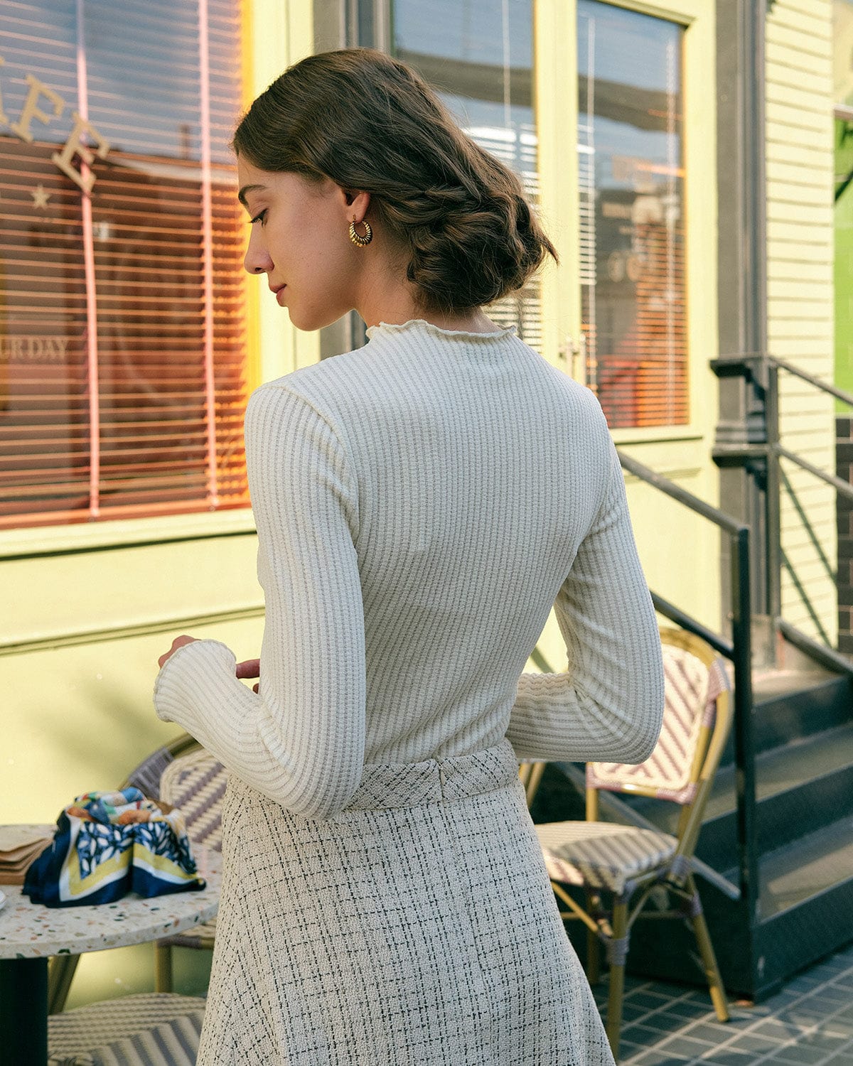 White Contrasting Button Sweater