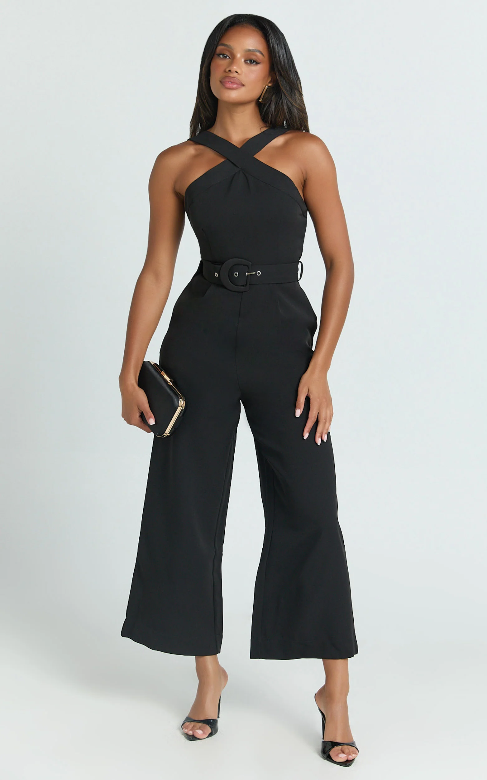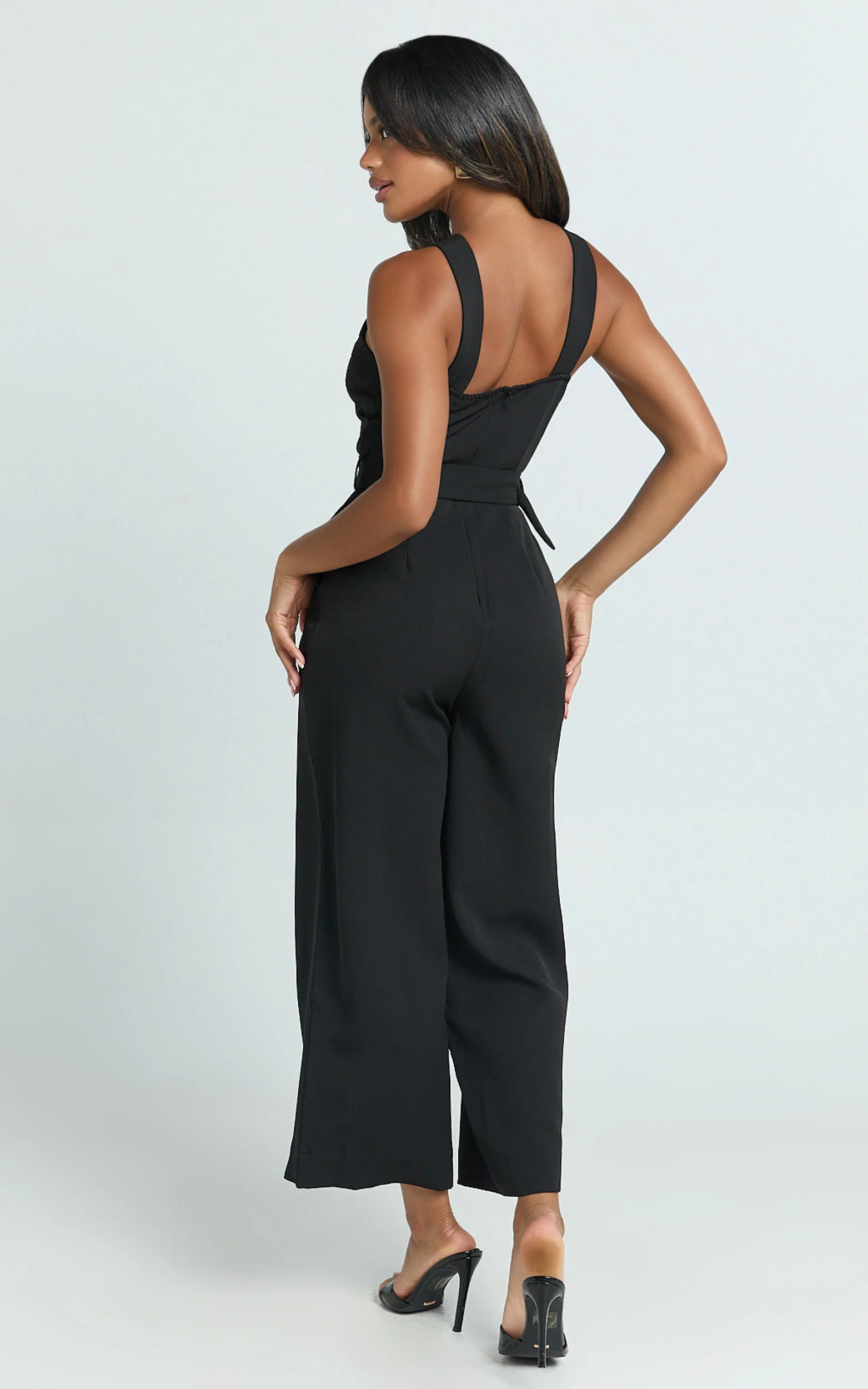 Tracy Jumpsuit - Diamond Neck Belted Straight Leg Jumpsuit in Black