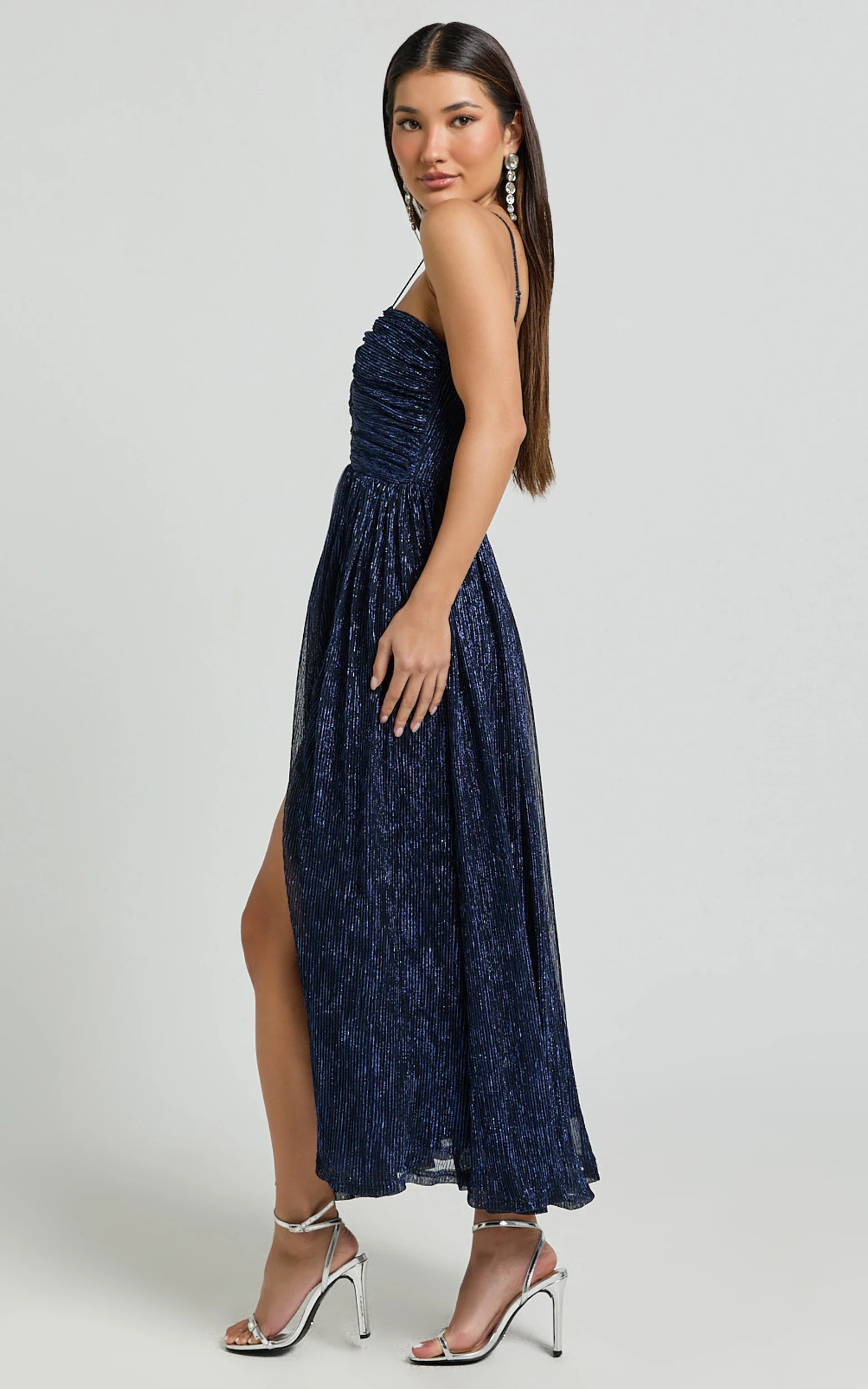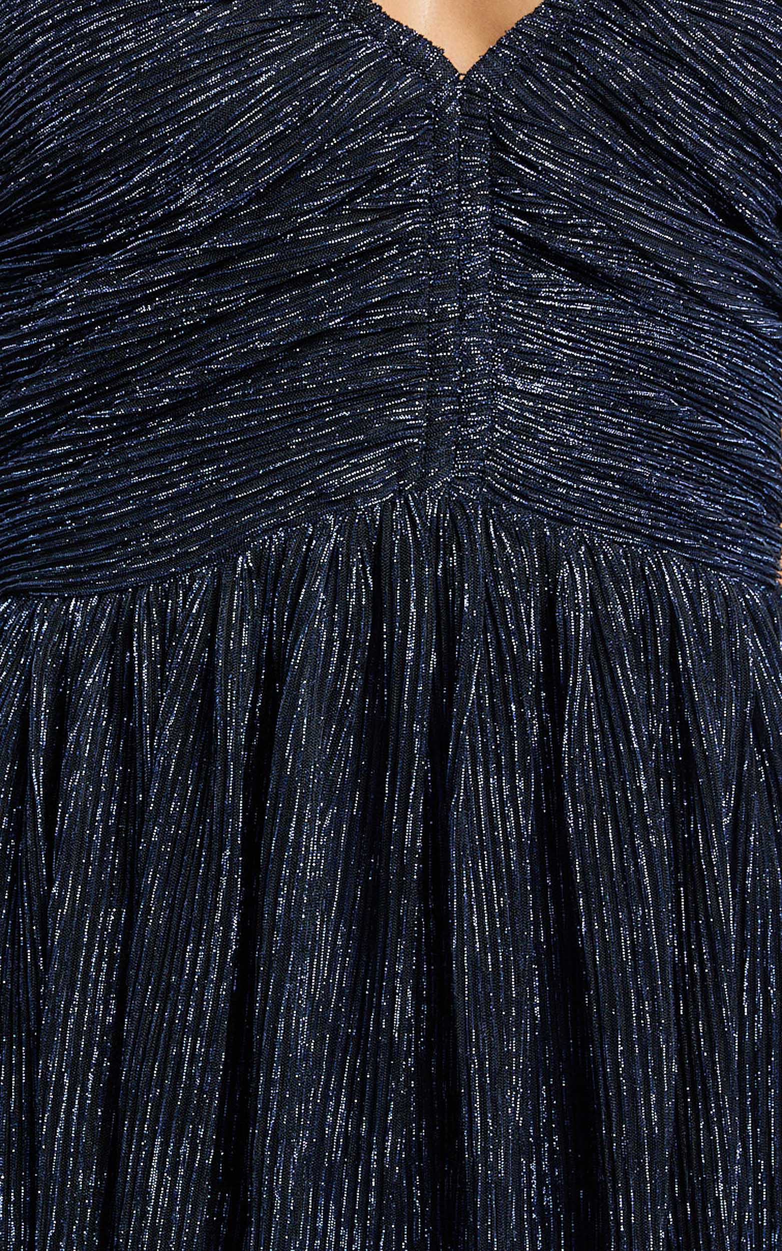 Sara Midi Dress - Ruched Bodice Lurex Dress in Navy
