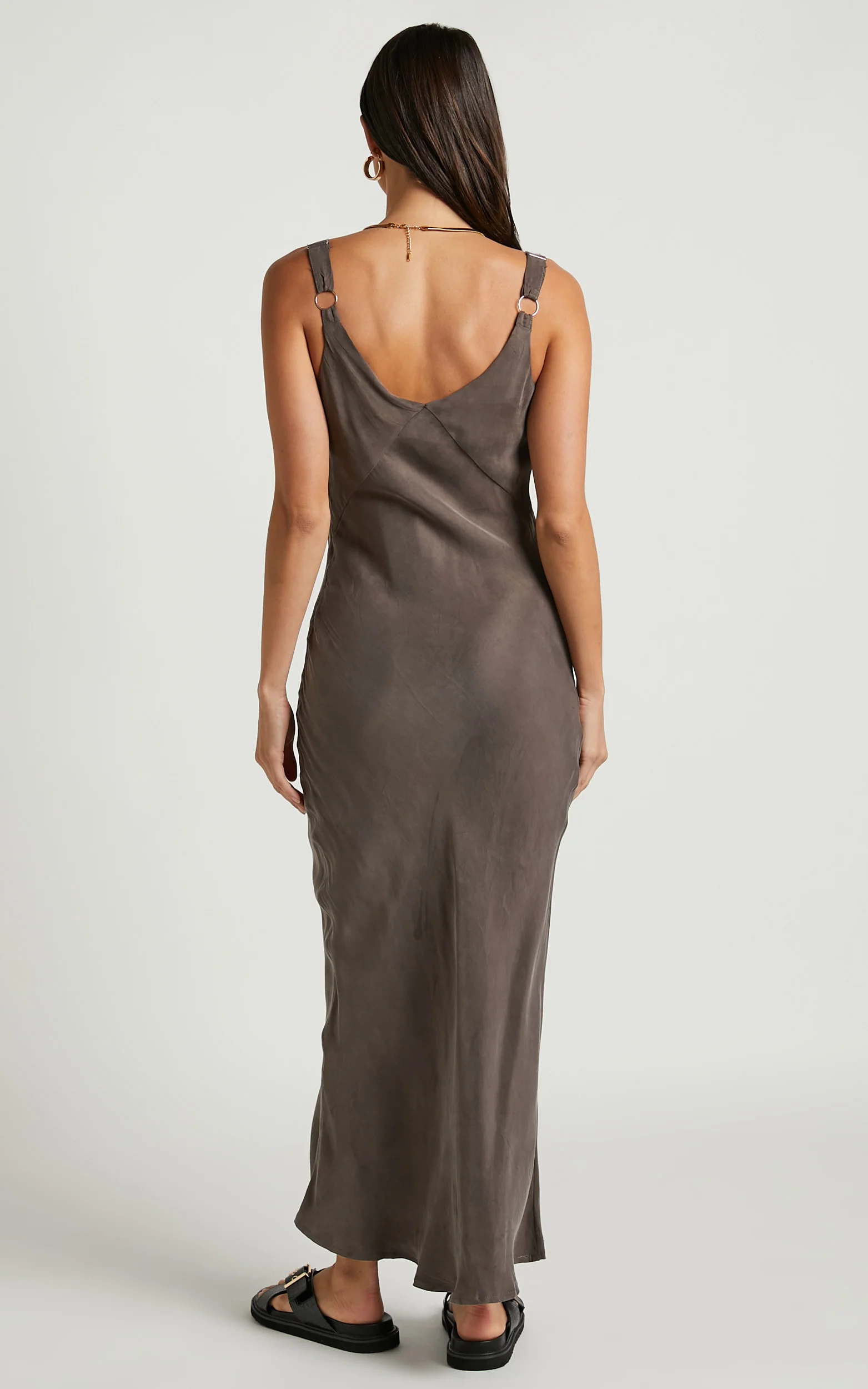 Kaya Midi Dress - Cupro Slip Dress in Warm Grey