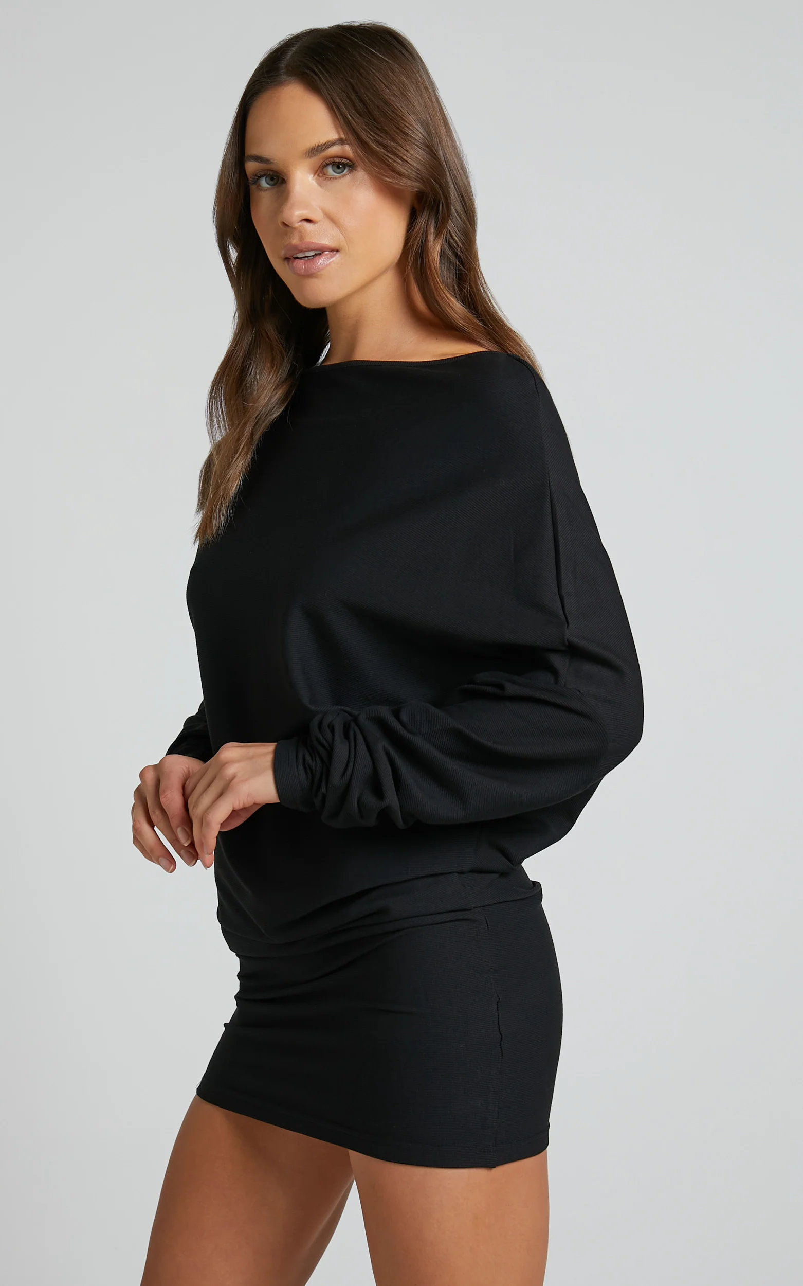 Fermina Mini Dress - Long Sleeve Bodycon Dress in Black