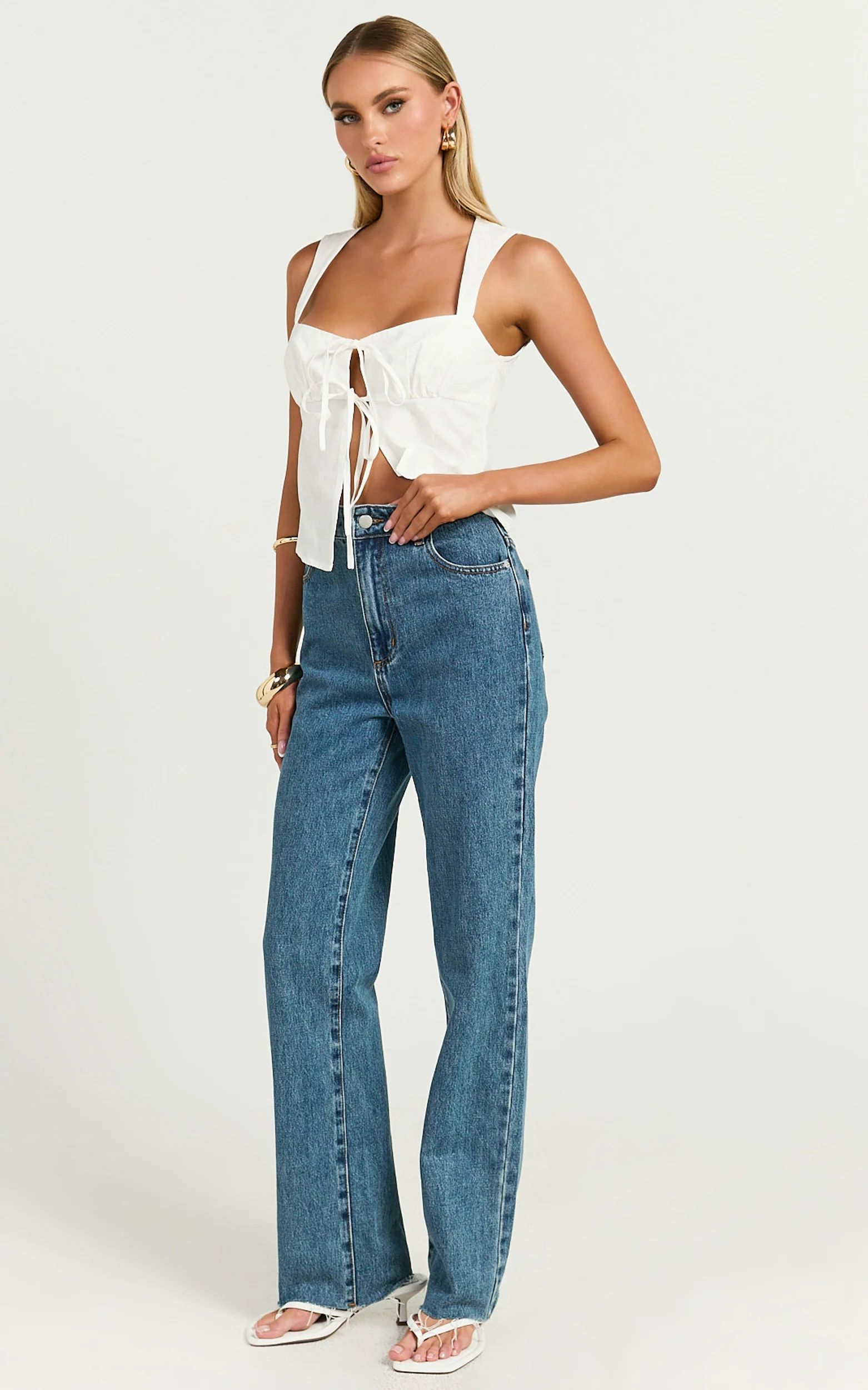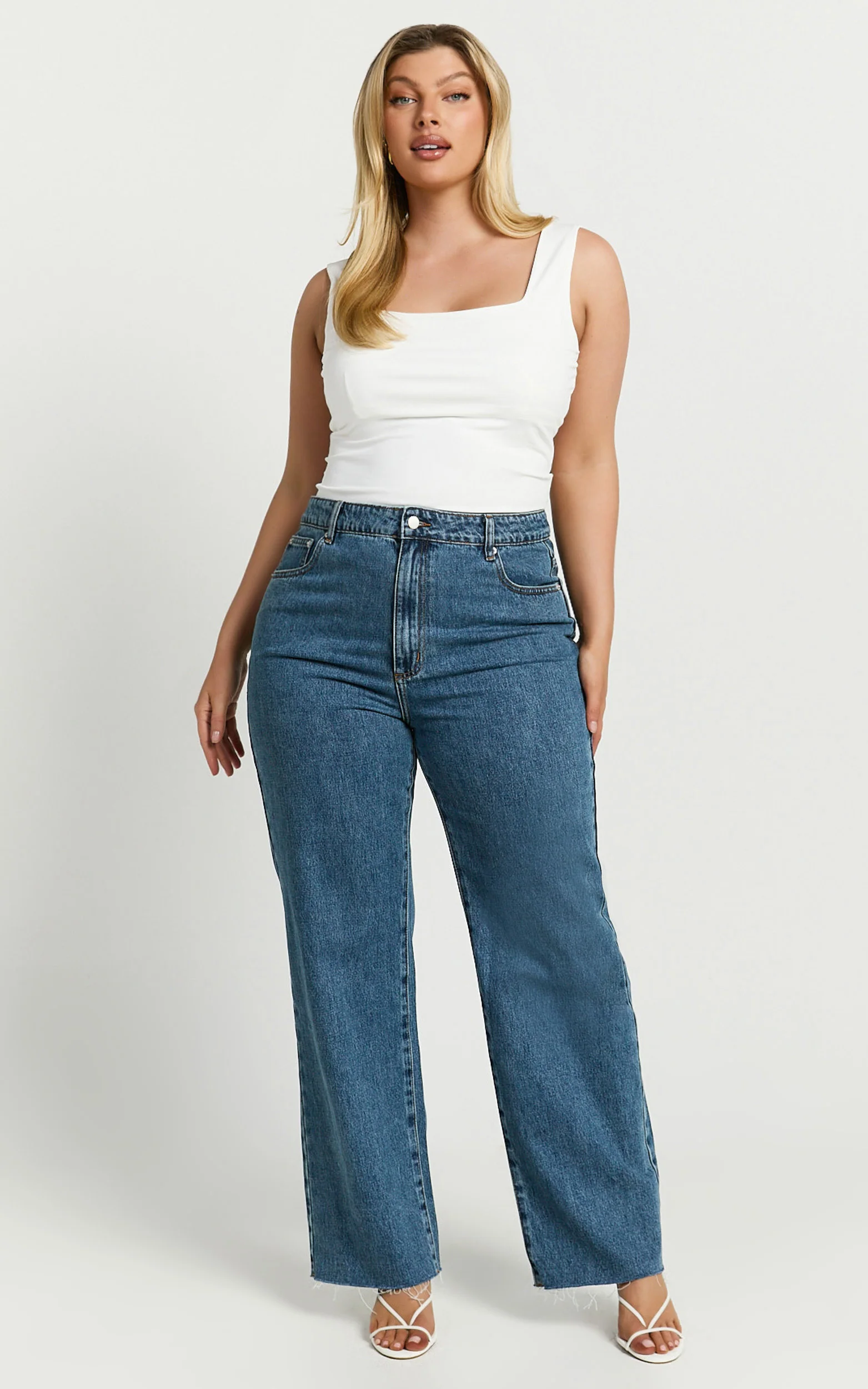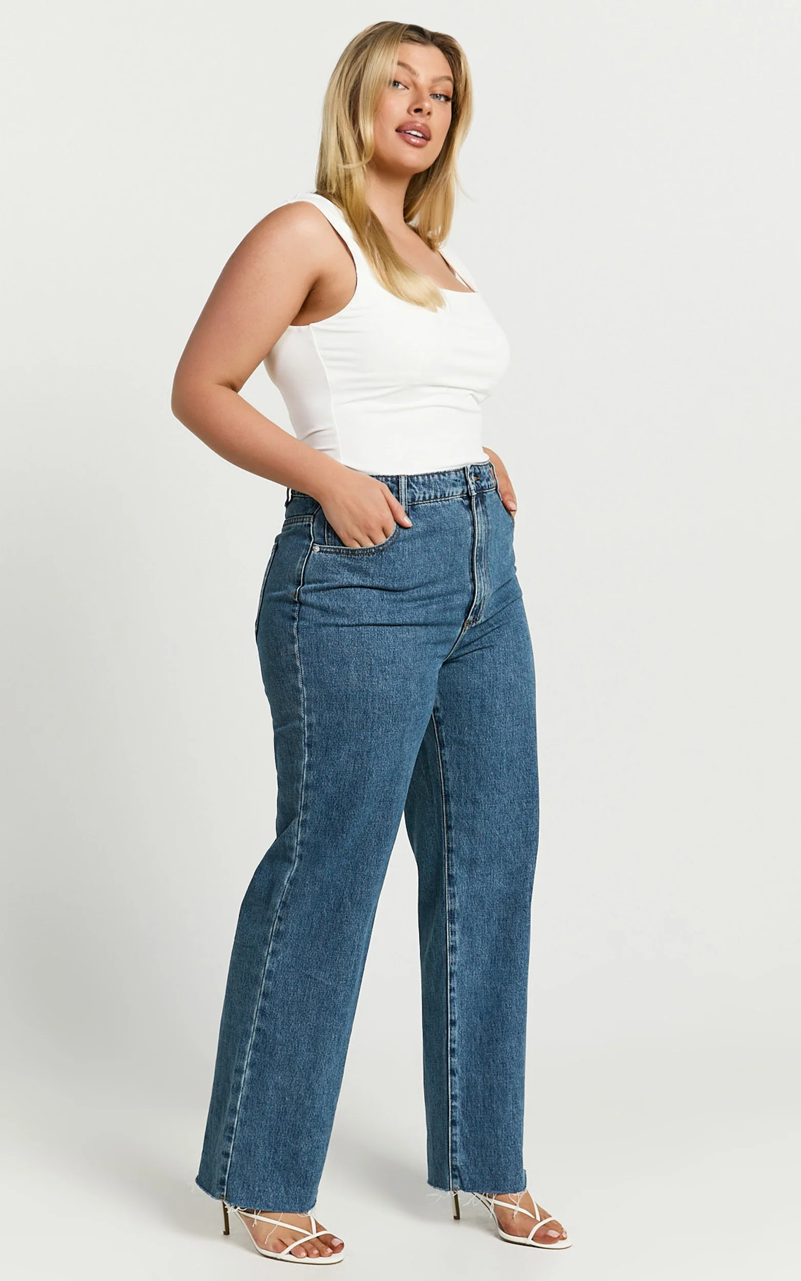 Dexter Jeans - High Waisted Straight Leg Denim Jeans in Dark Blue Wash