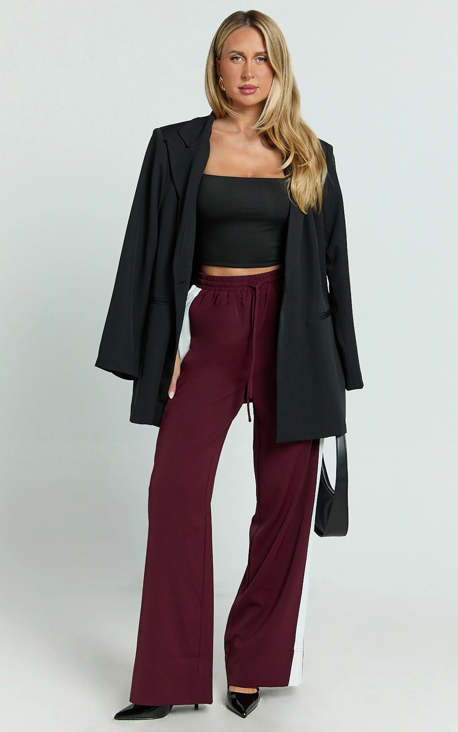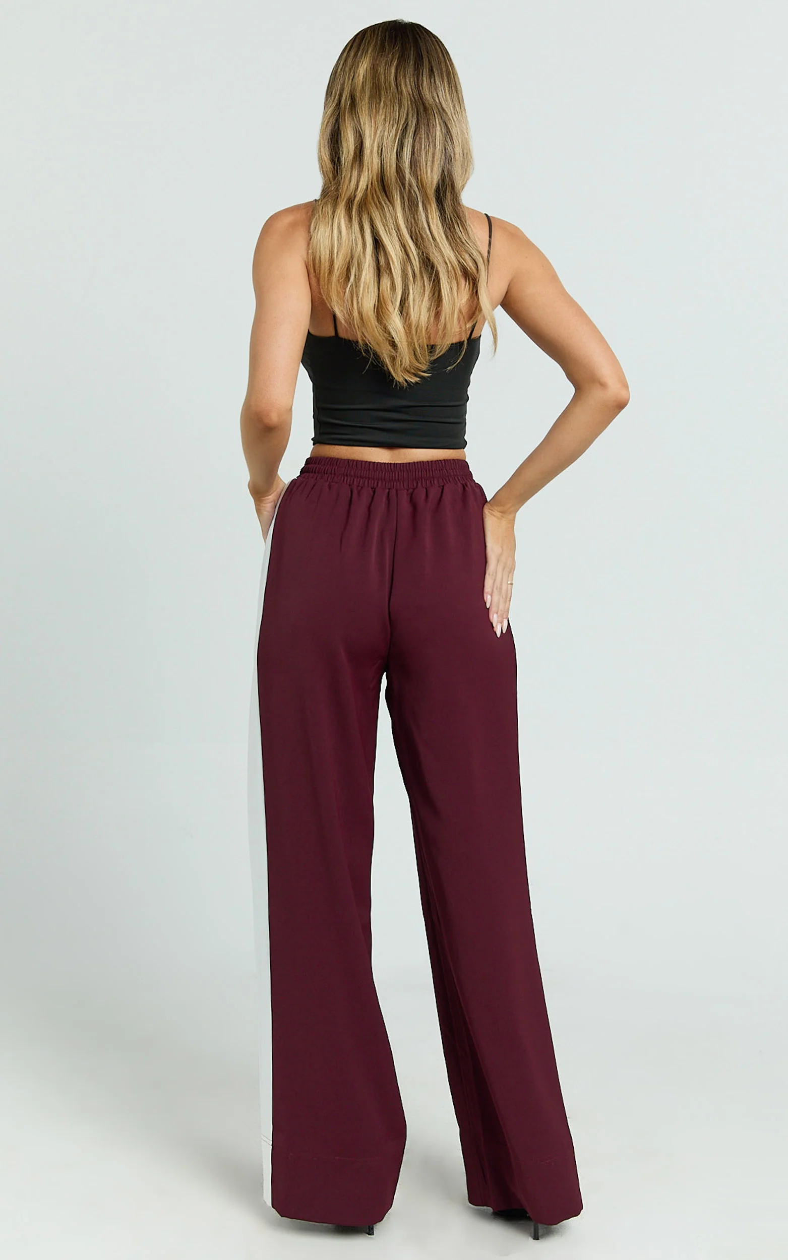 Davi Pants - Drawstring Waist Contrast Panel Tailored Pants in Burgundy
