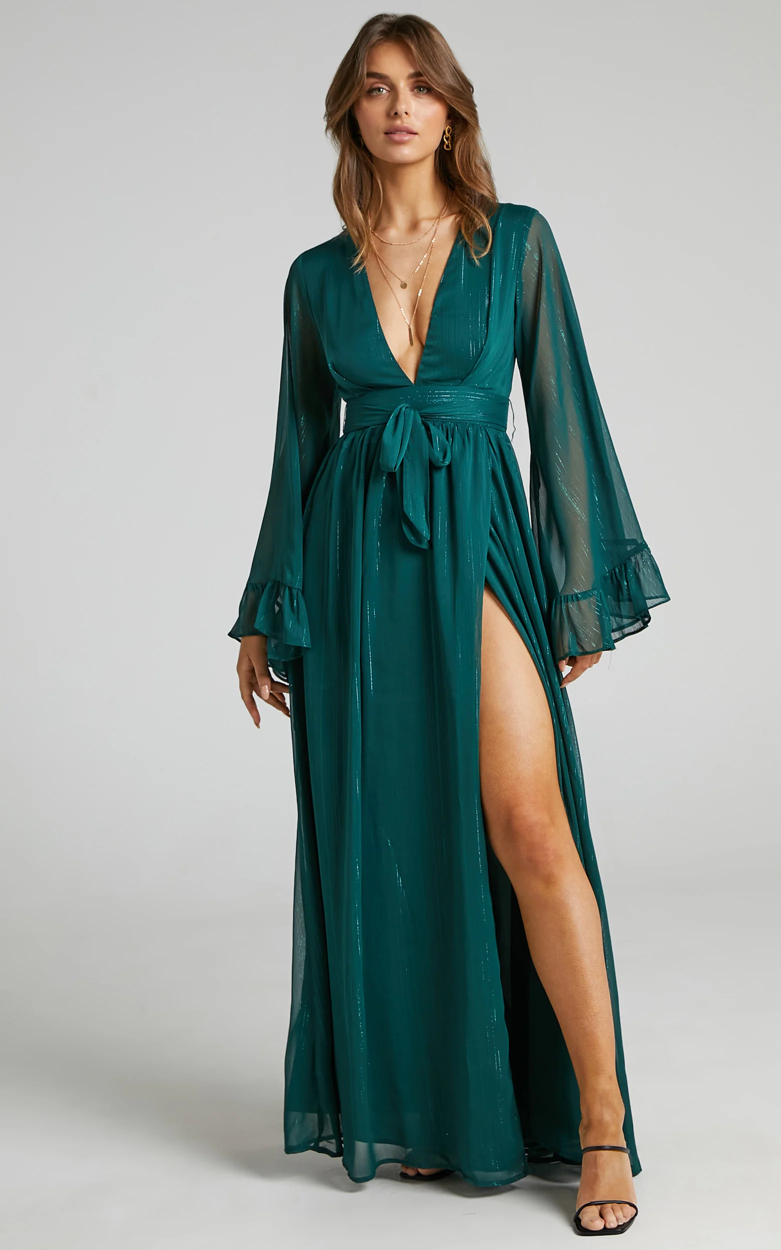 Dangerous Woman Maxi Dress - Plunge Thigh Split Dress in Emerald