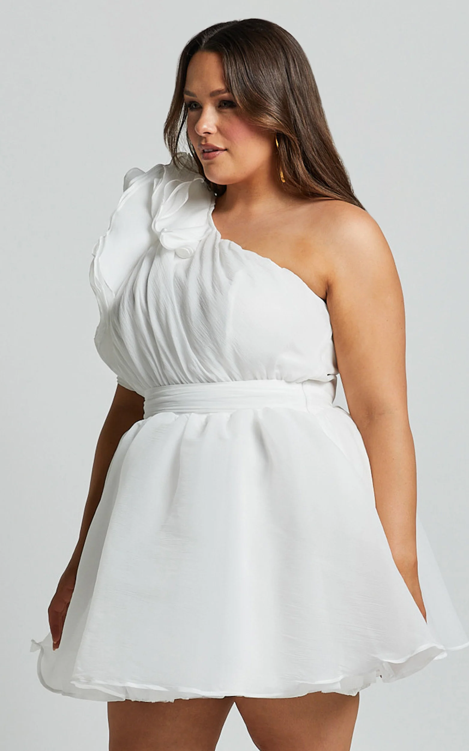 Avriella Mini Dress - One Shoulder Detail Fit & Flare in Ivory