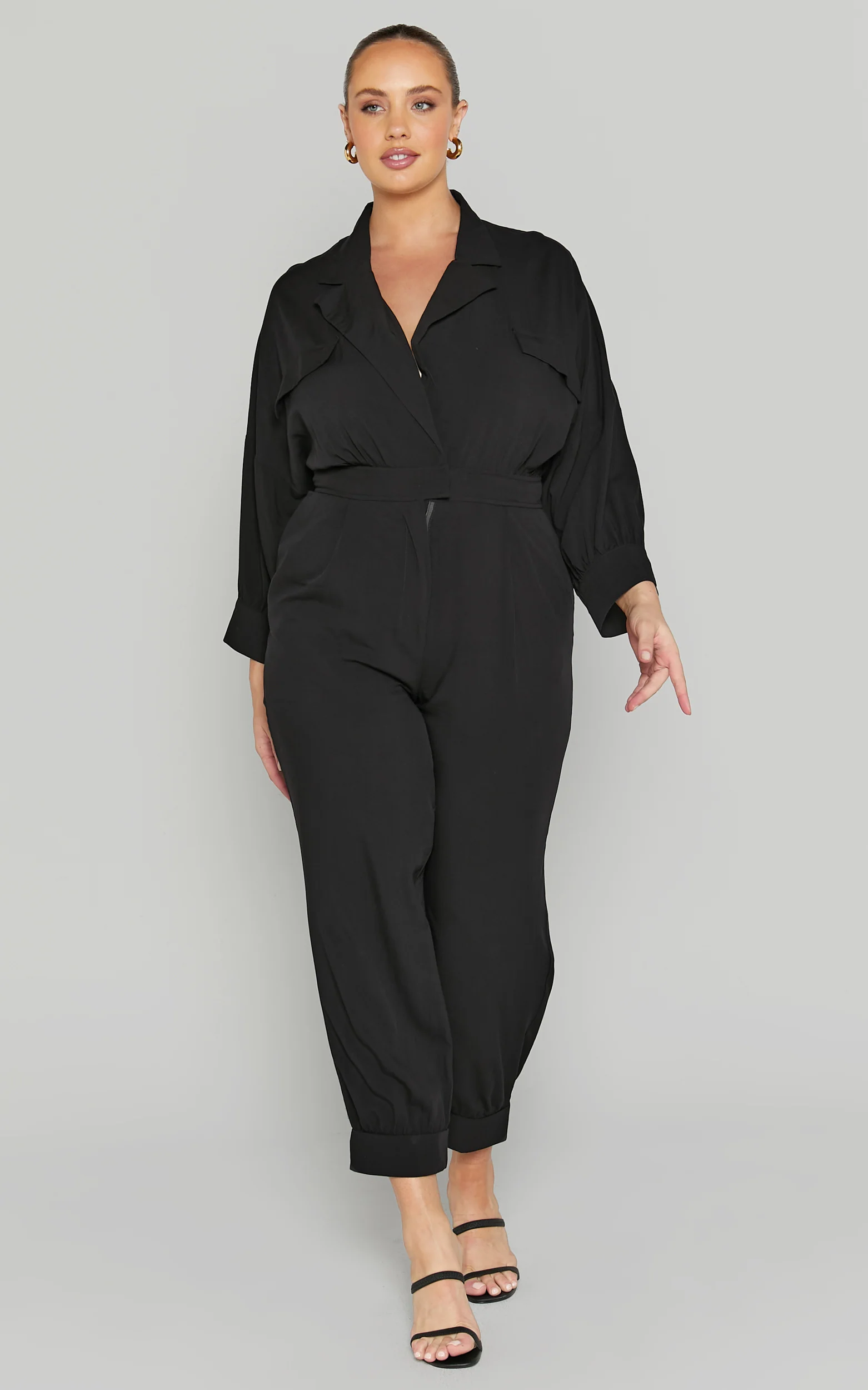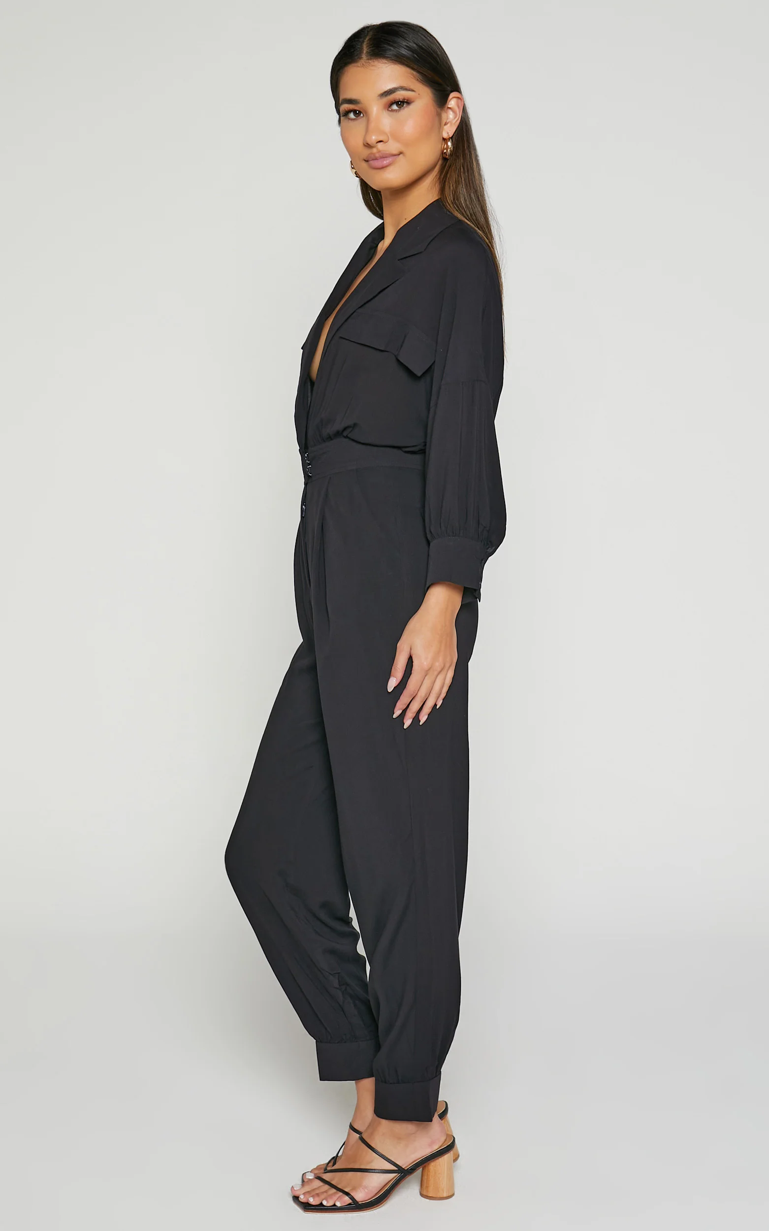 Ayelin Jumpsuit - Linen Relaxed 3/4 Sleeve Jumpsuit in Black