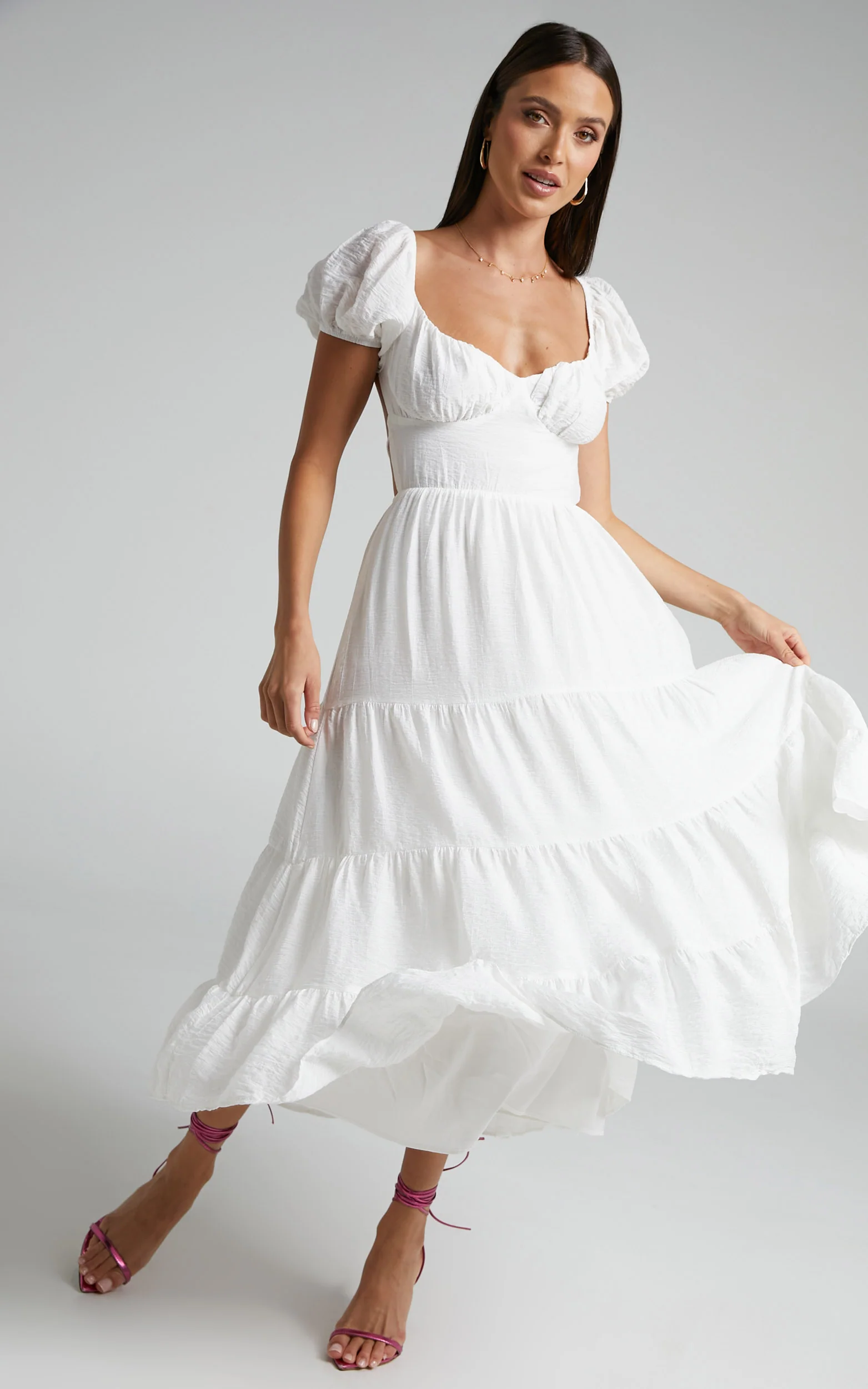 Anita Midi Dress - Puff Sleeve Tiered Dress in White