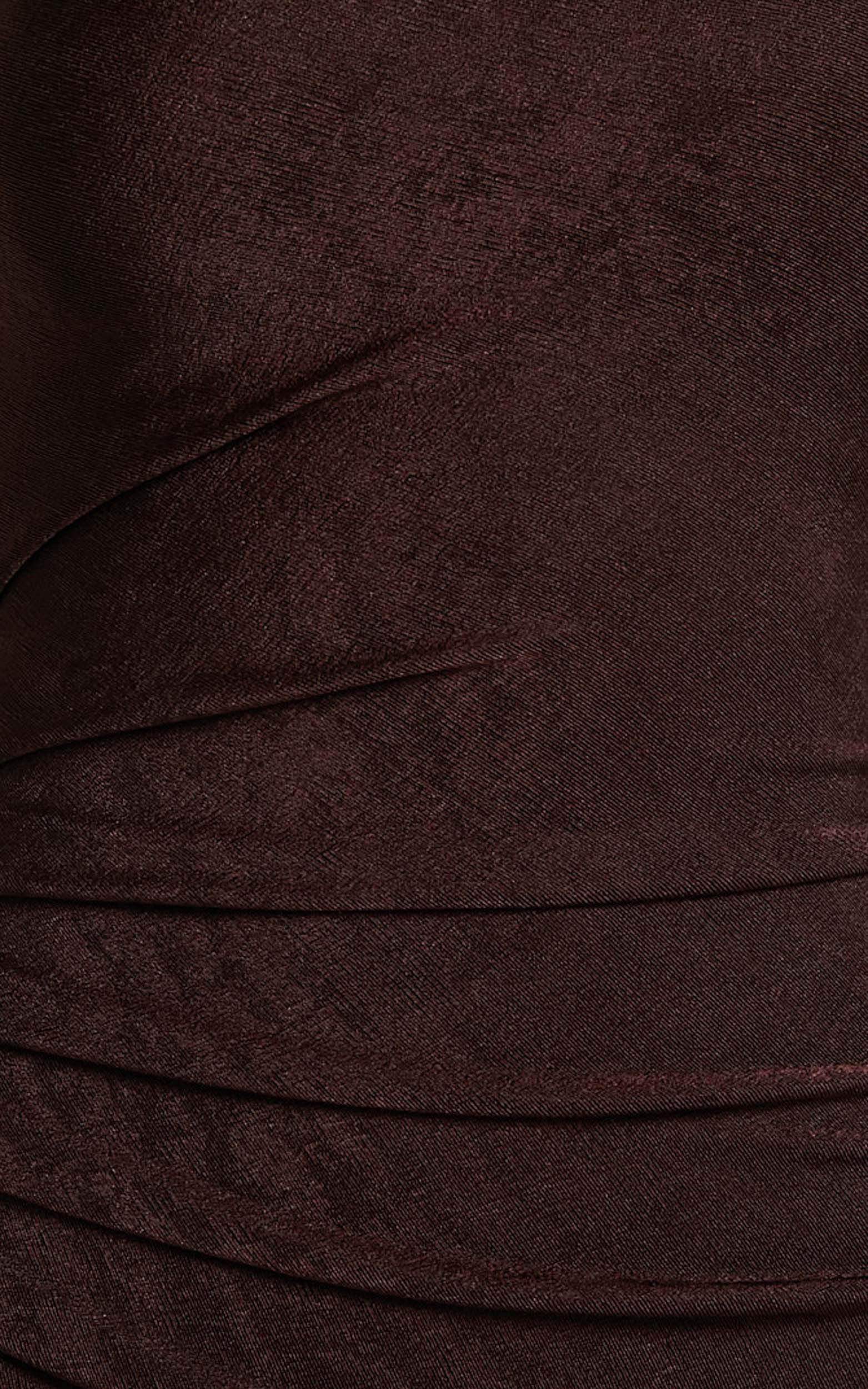 Arietty Midi Dress - One Shoulder Asymmetrical Ruched Dress in Chocolate