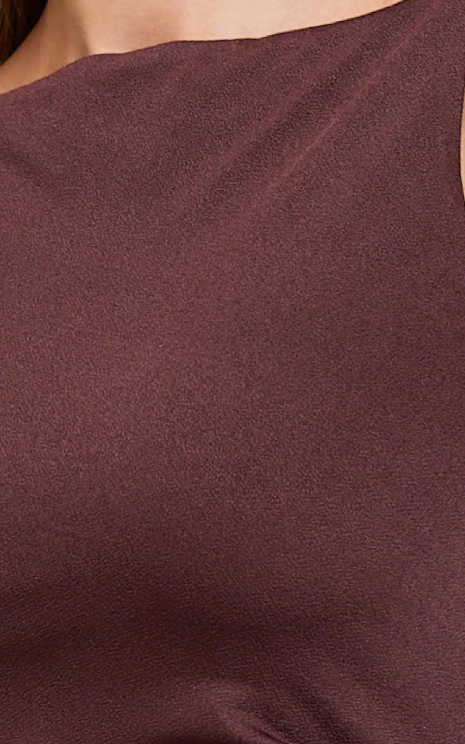 Audette Maxi Dress - Boat Neck Ruched Fitted Dress in Chocolate