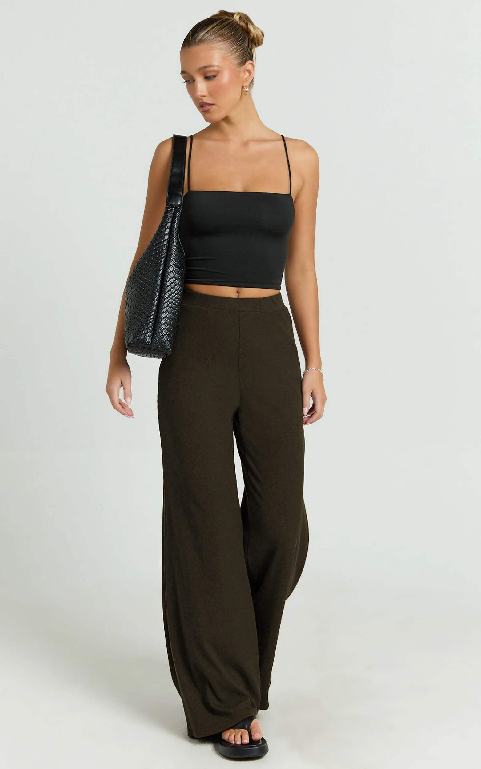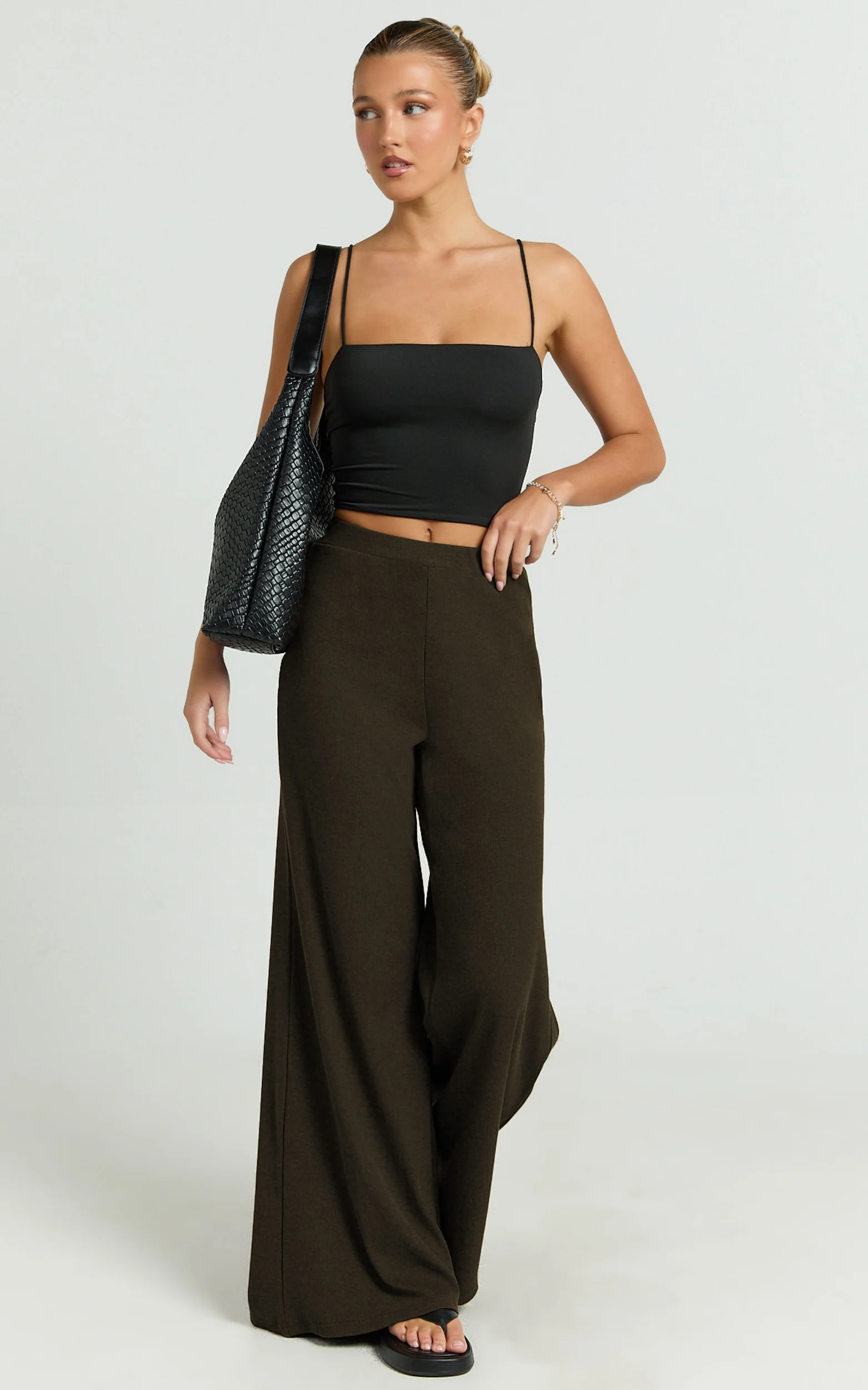 Amalthea Pants - High Waisted Jersey Rib Wide Leg Pants in Chocolate