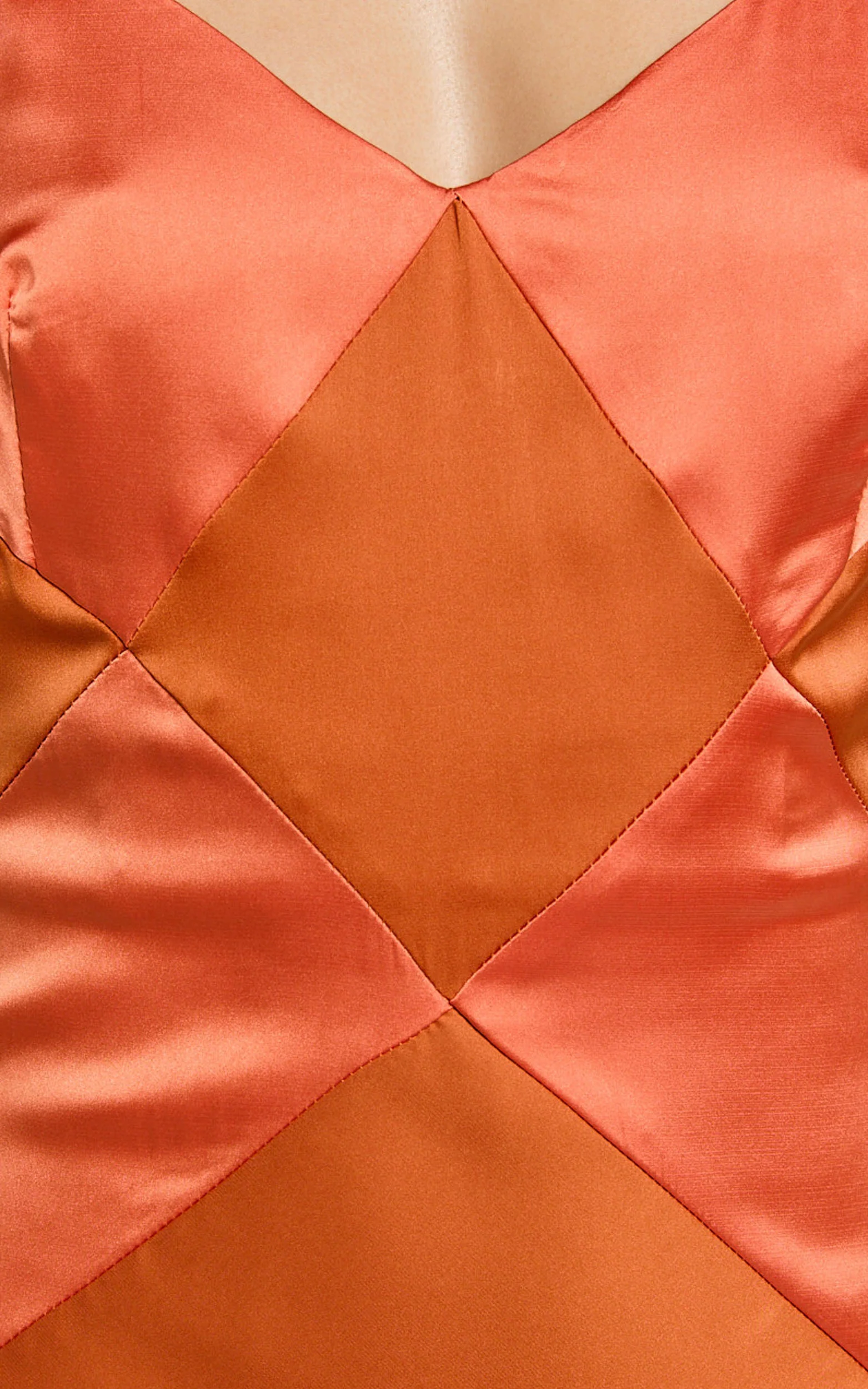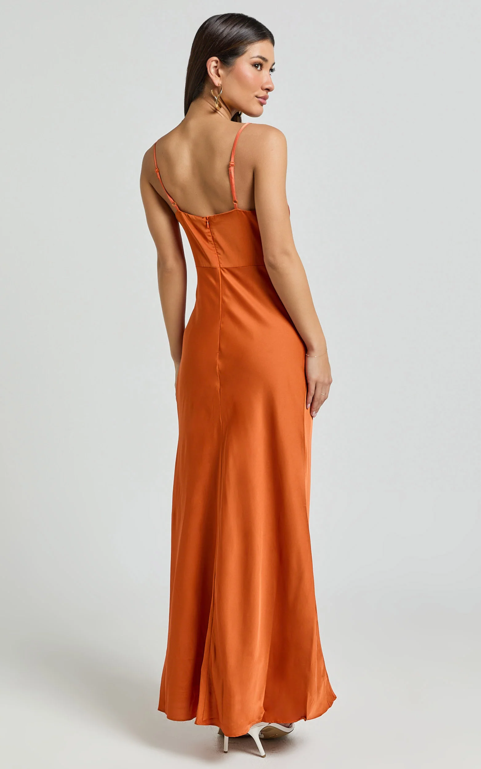 Amira Midi Dress - V Neck Sleeveless Slip Dress in Orange