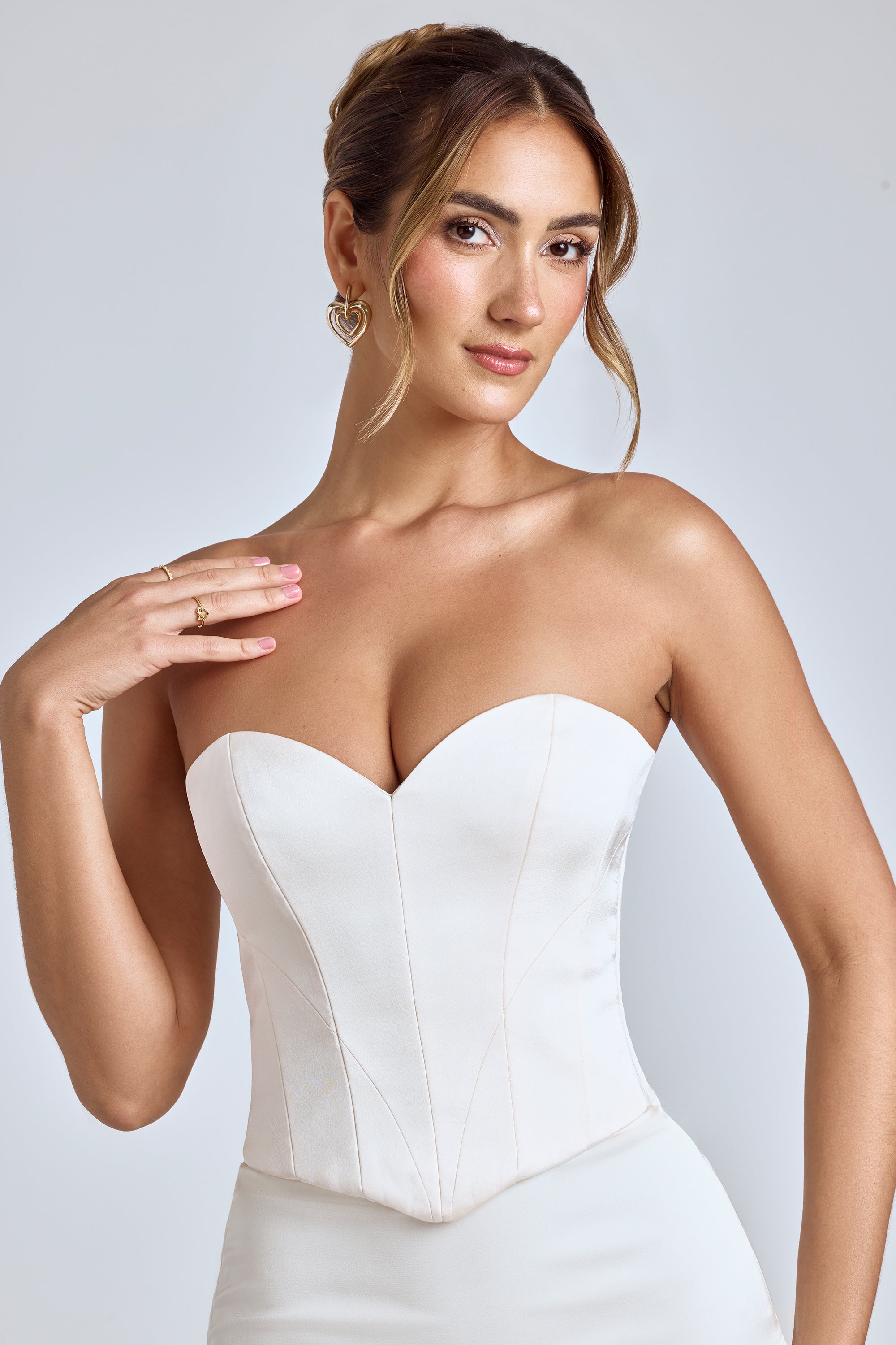 Effie-Strapless Lace-Up Satin Corset in Ivory