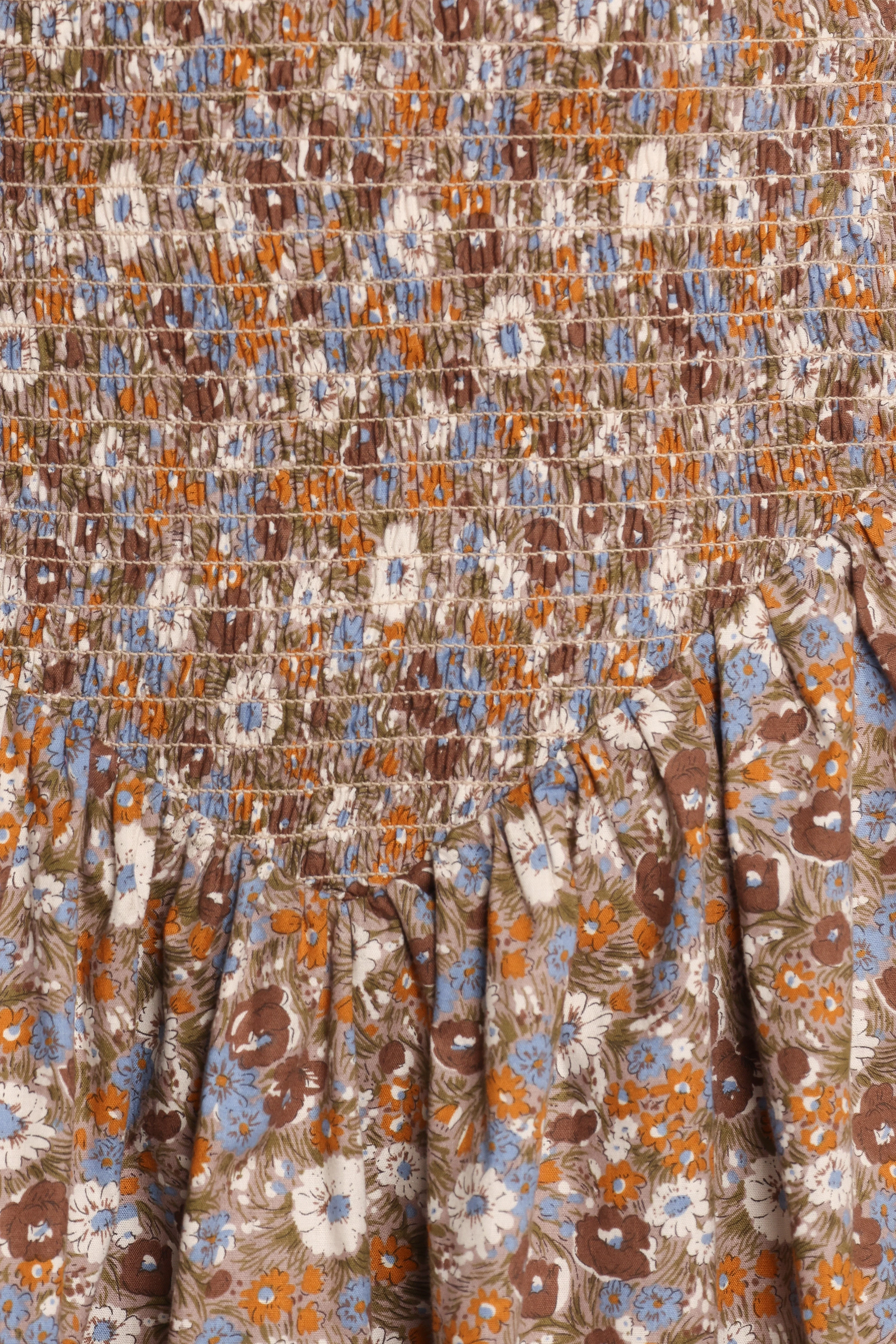 Buttercup Vintage Floral Print Pleated Cotton Mini Dress