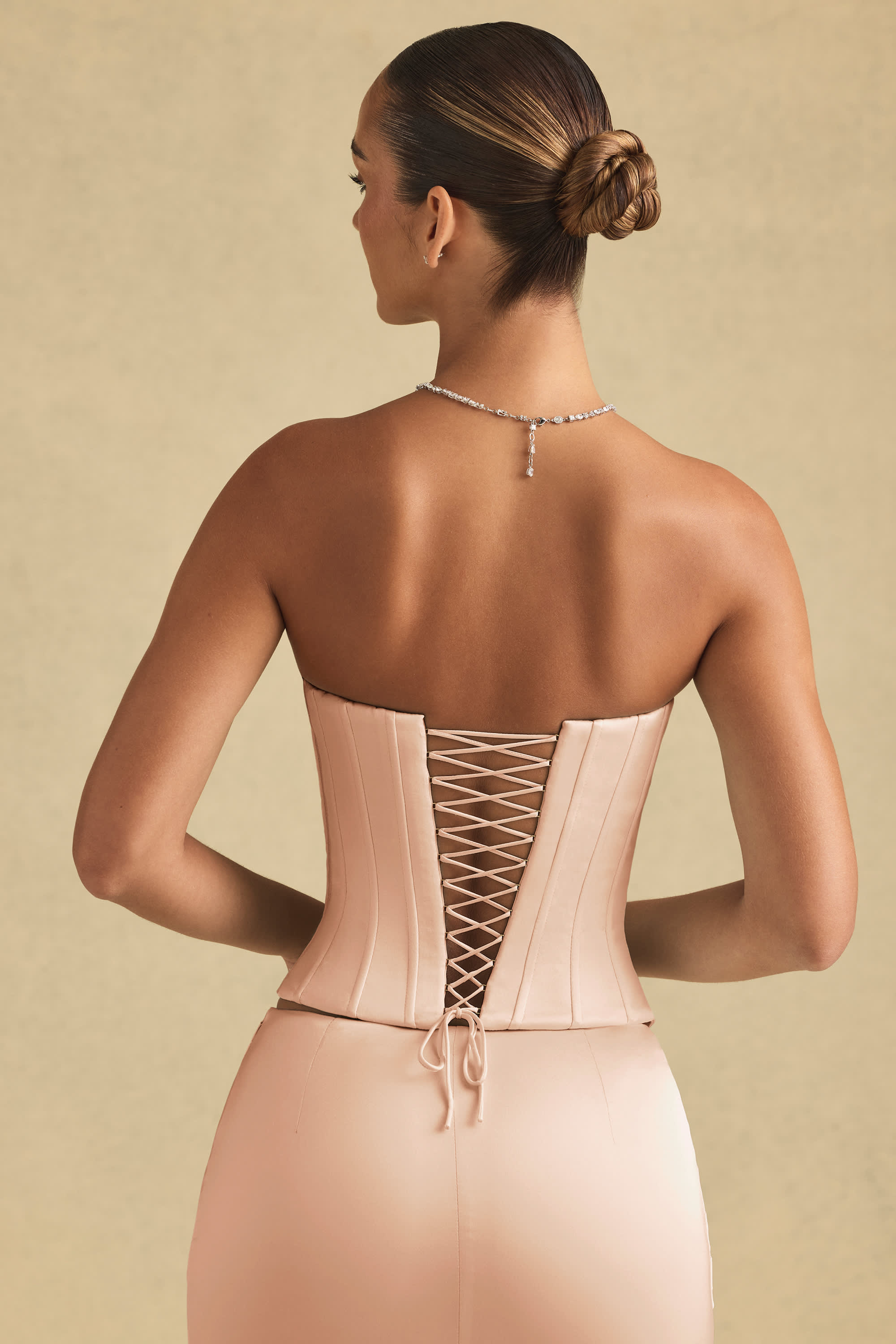 Araminta-Lace-Up Corset Top in Beige Gold