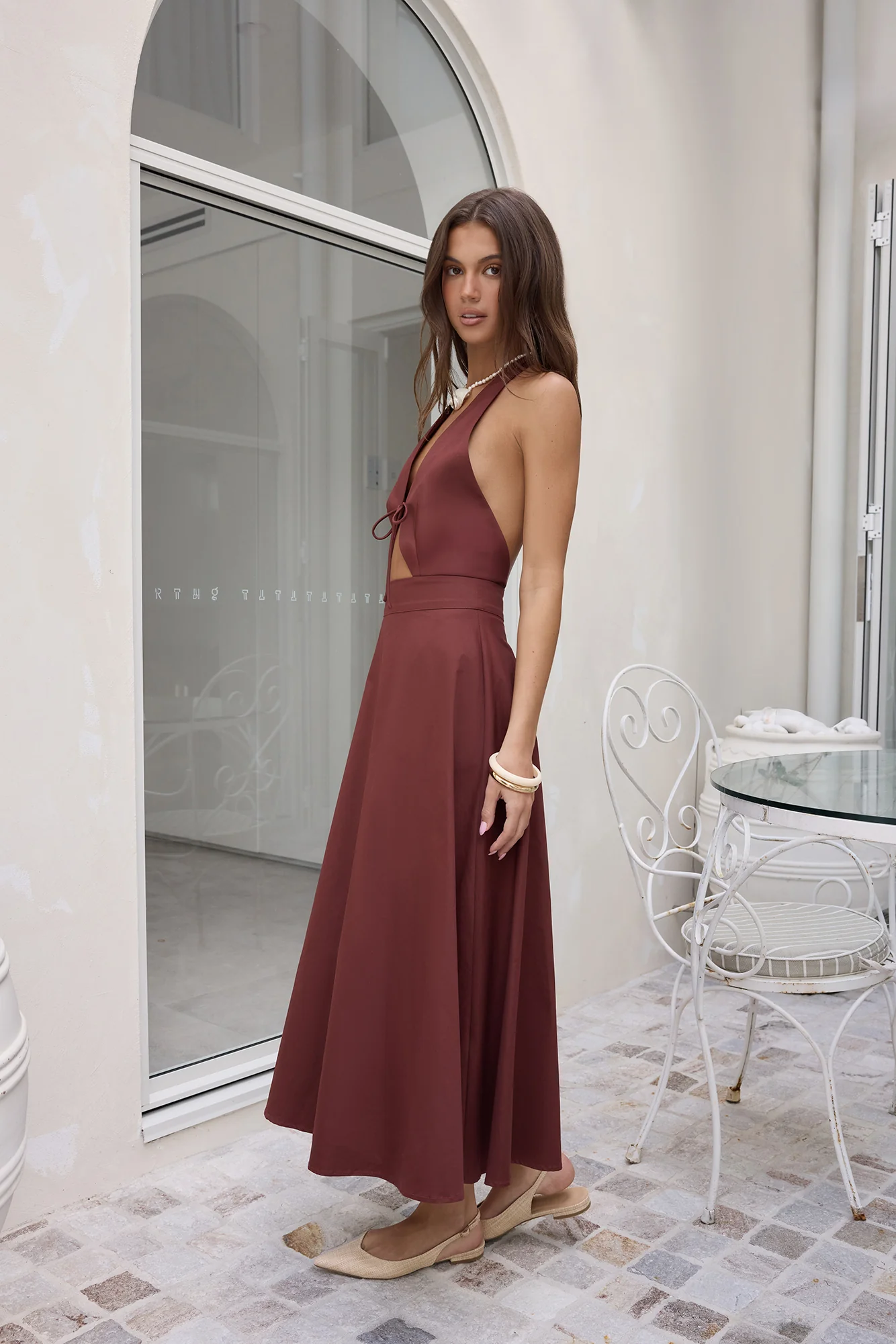 Avenley-Modal Mid-Rise Fishtail Maxi Skirt in Chocolate Brown