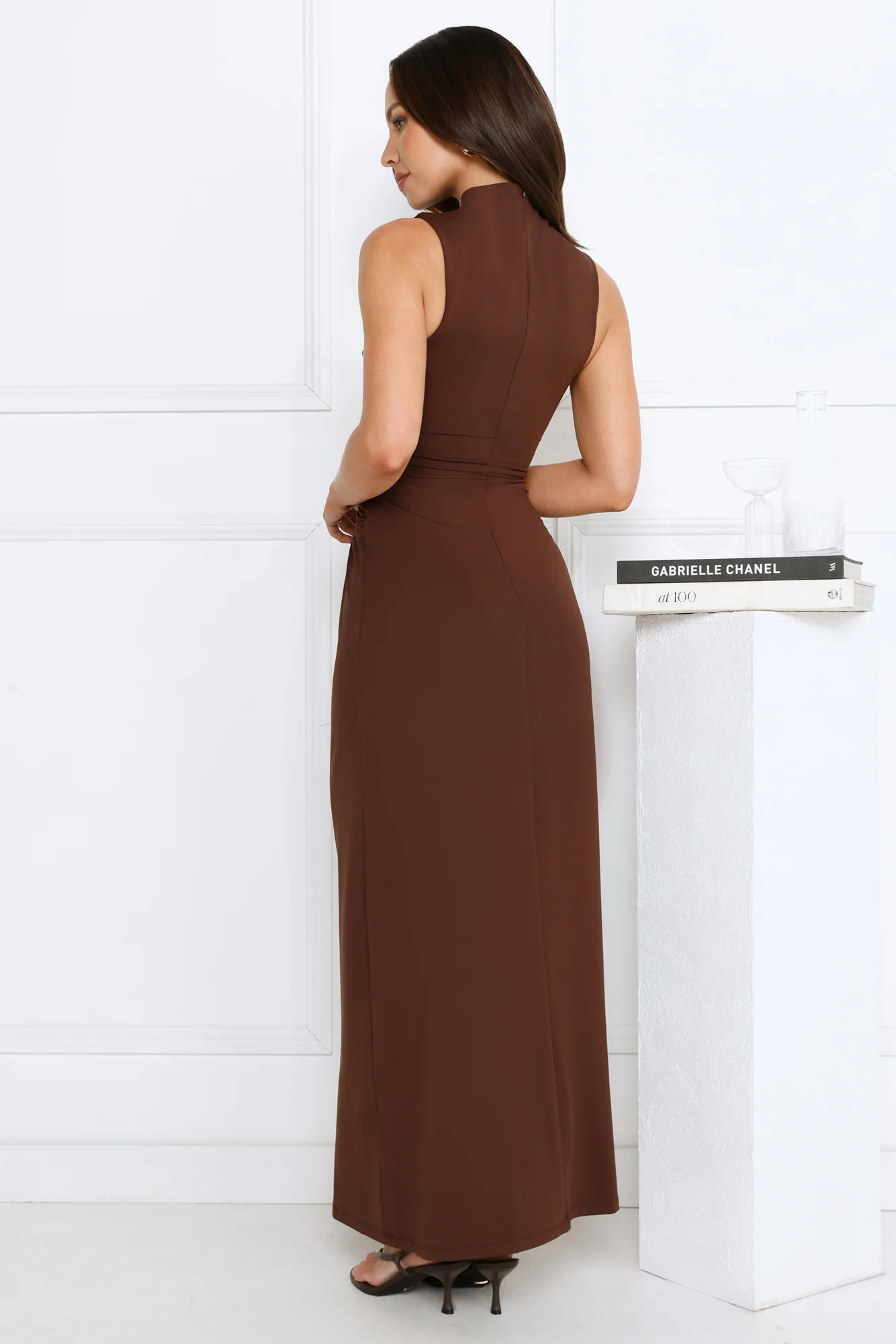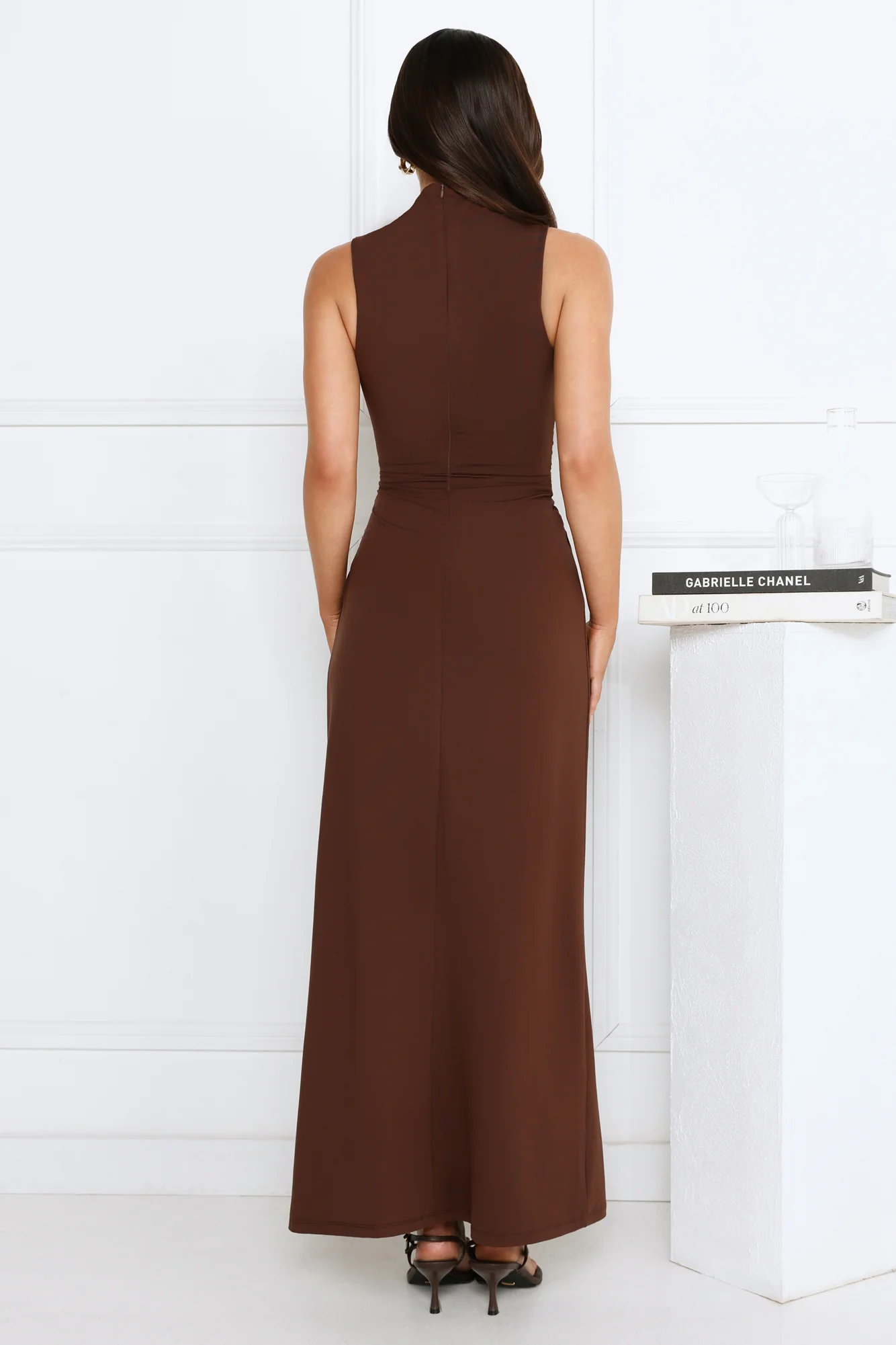 Mid Length Hooded Puffer Coat in Cocoa Brown
