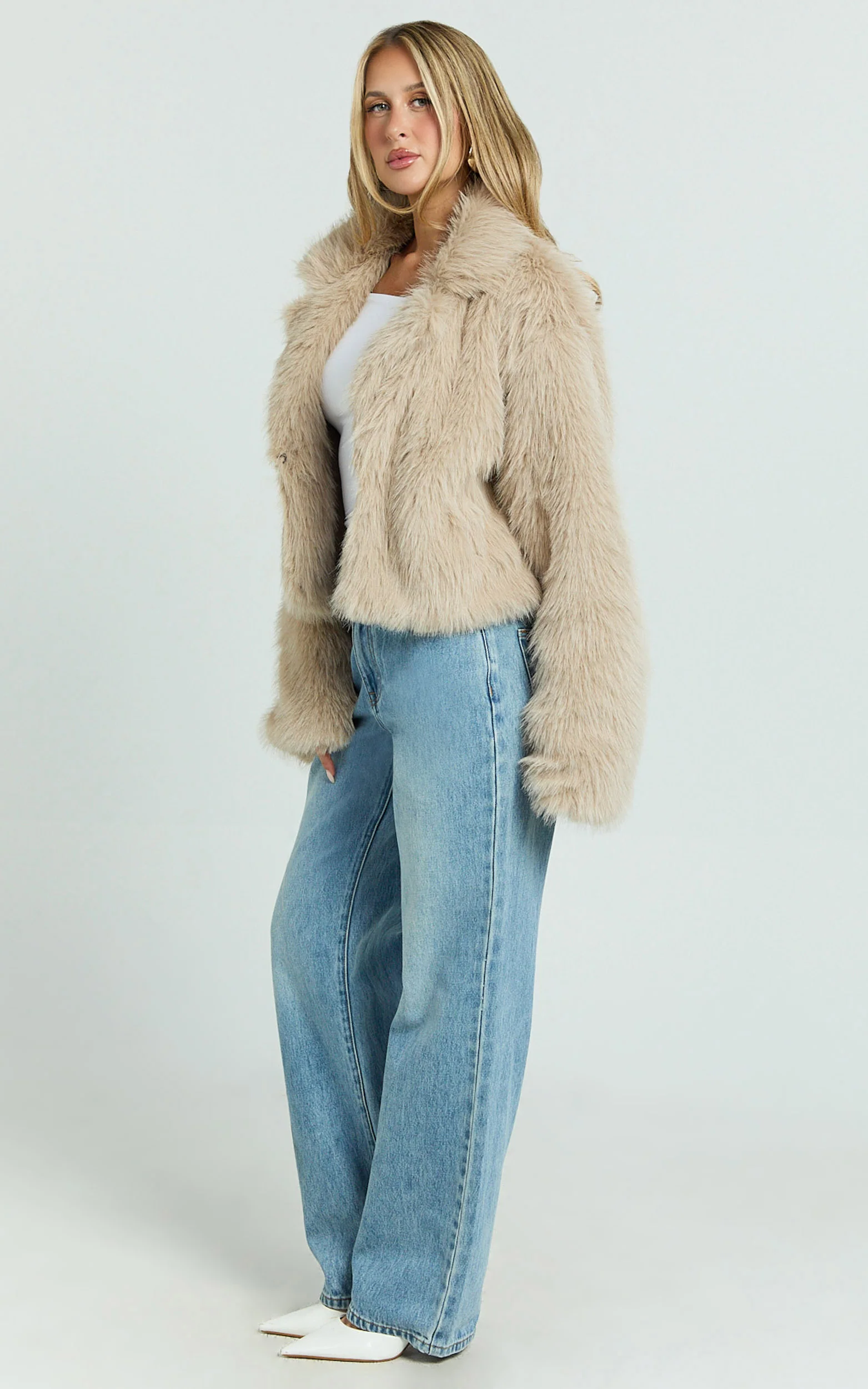 Charisse Coat - Oversized Crop Faux Fur Coat in Light Brown