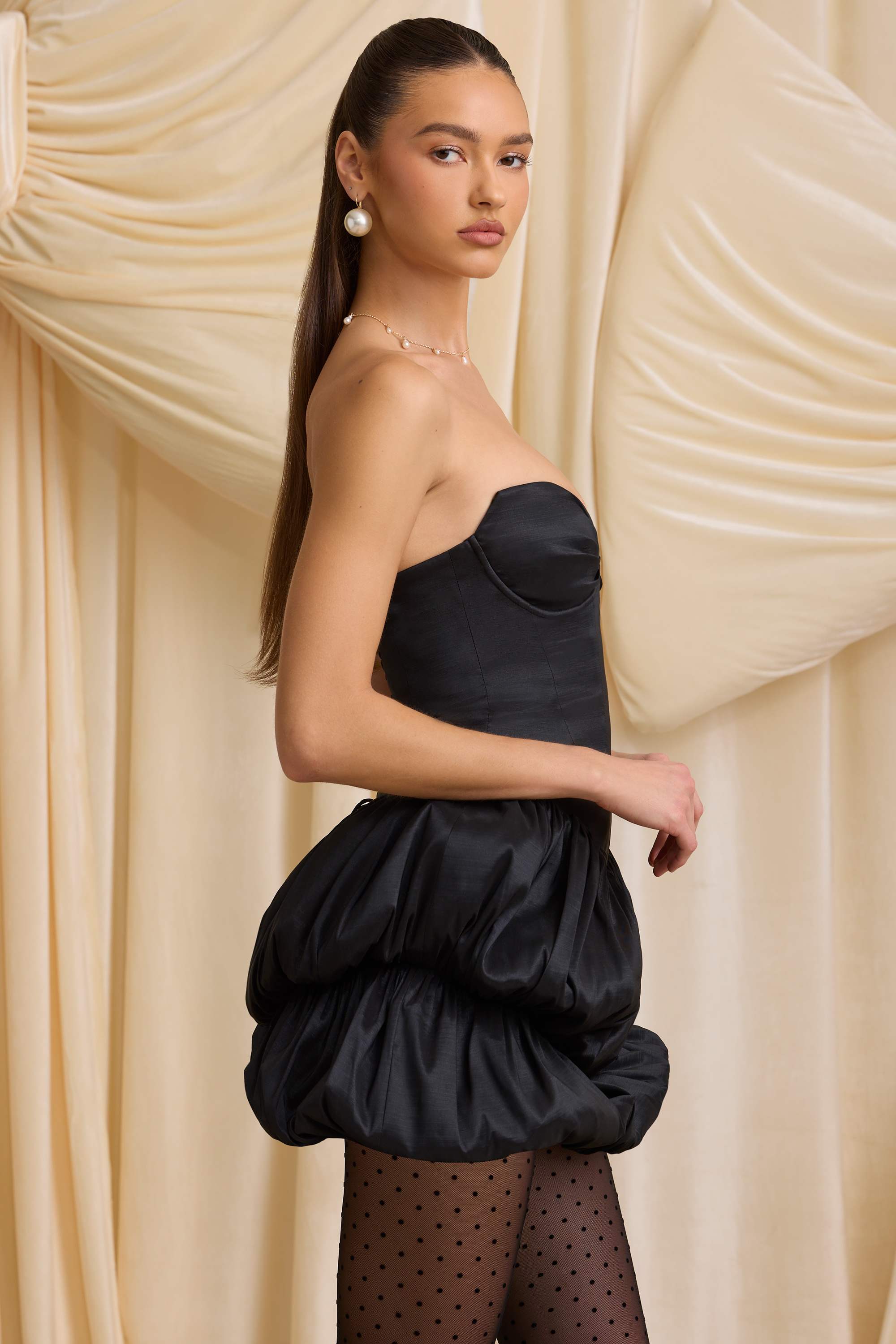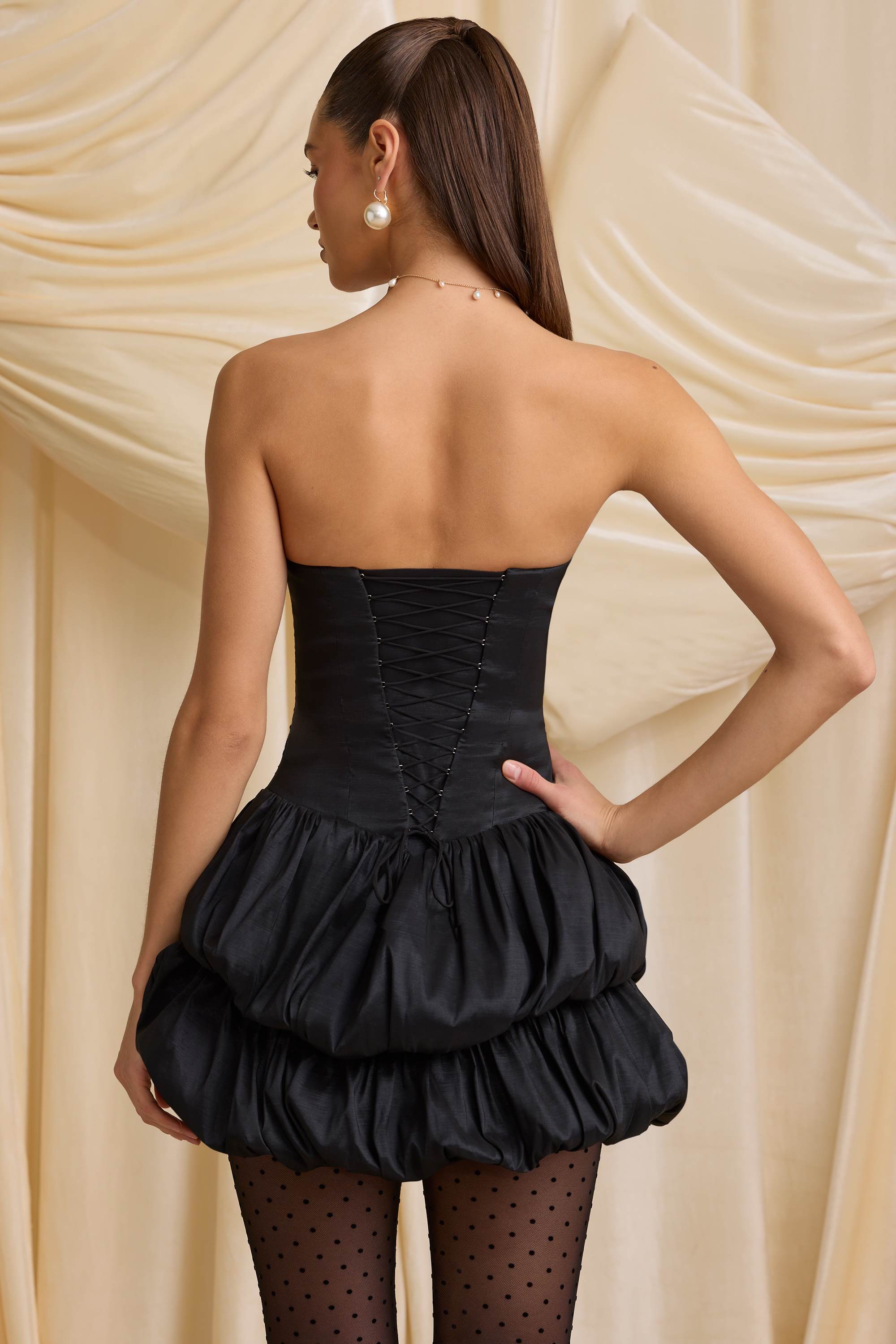 Laela-Layered Bubble Hem Corset Mini Dress in Black