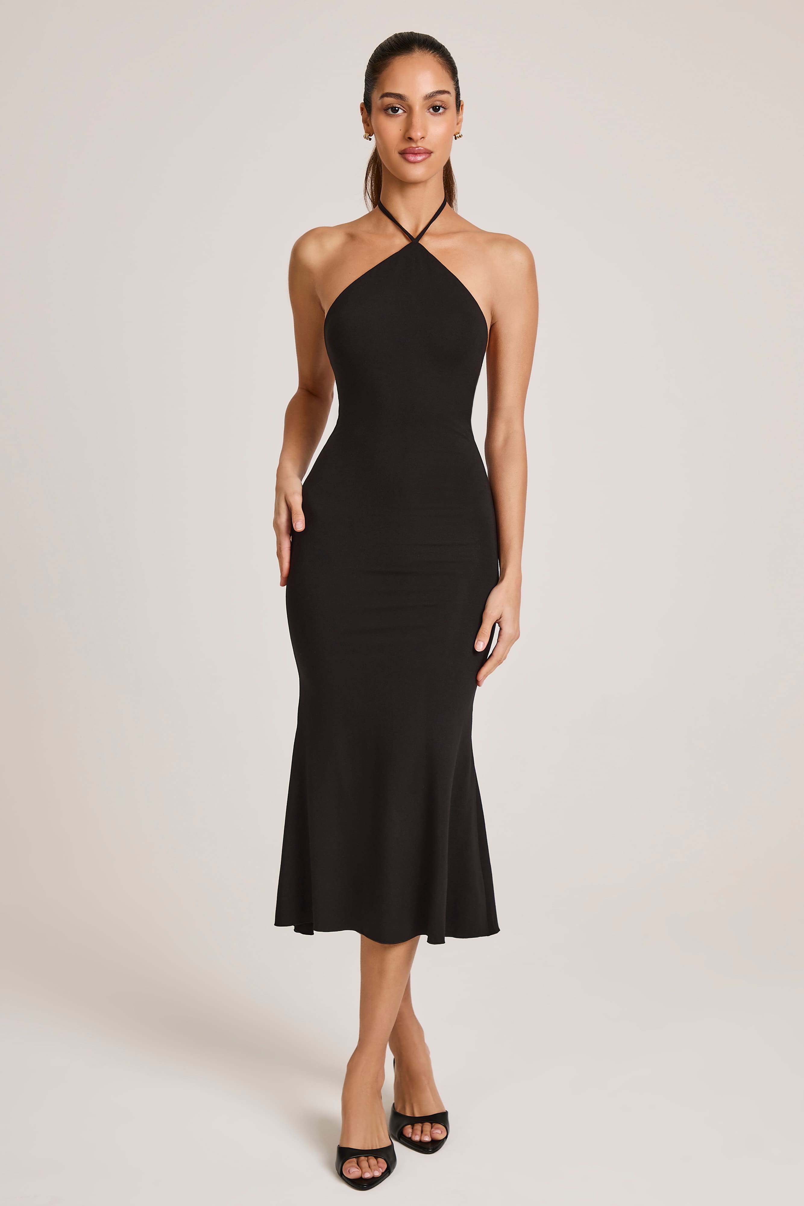 Karissa-Modal Halterneck Midaxi Dress in Black