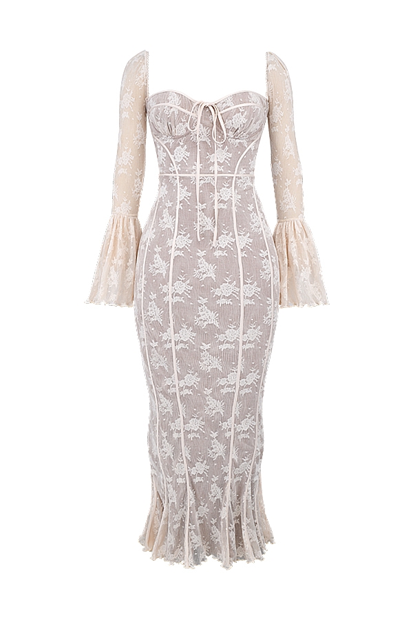 Vintage Cream Floral Lace Off Shoulder Maxi Dress