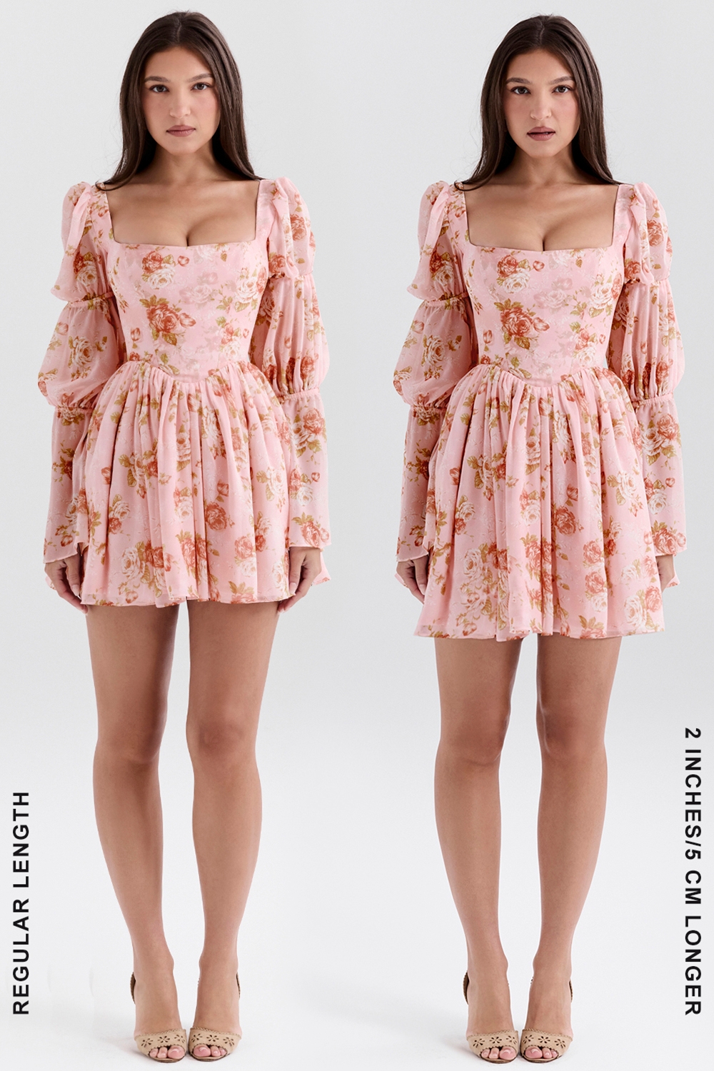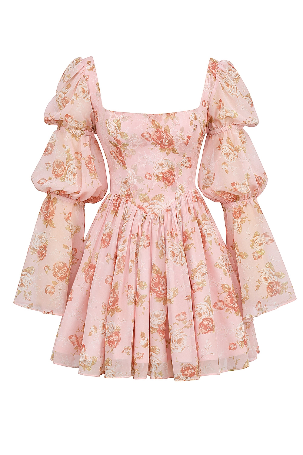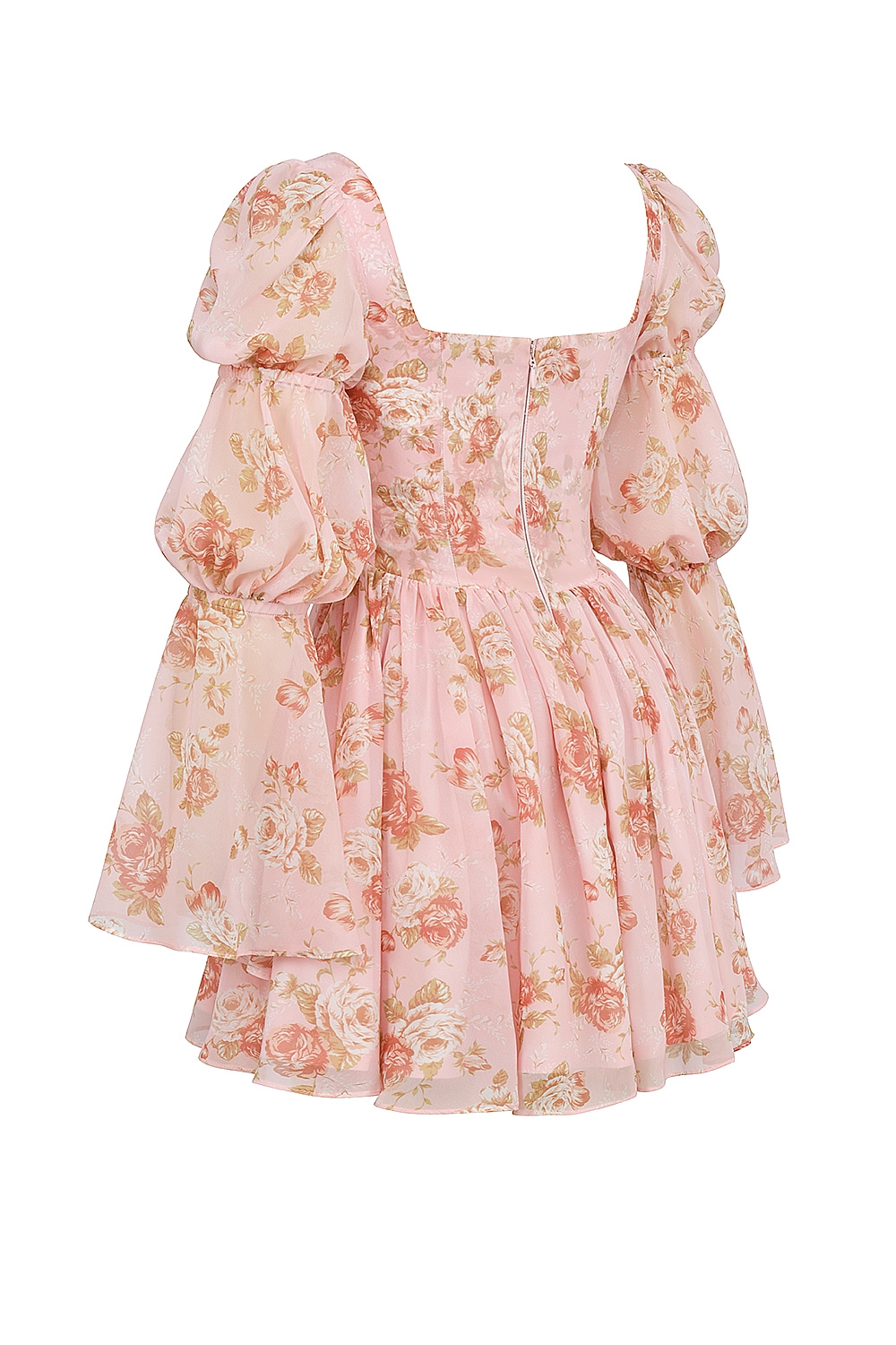 English Vintage Rose Print Puff Sleeve Mini Dress