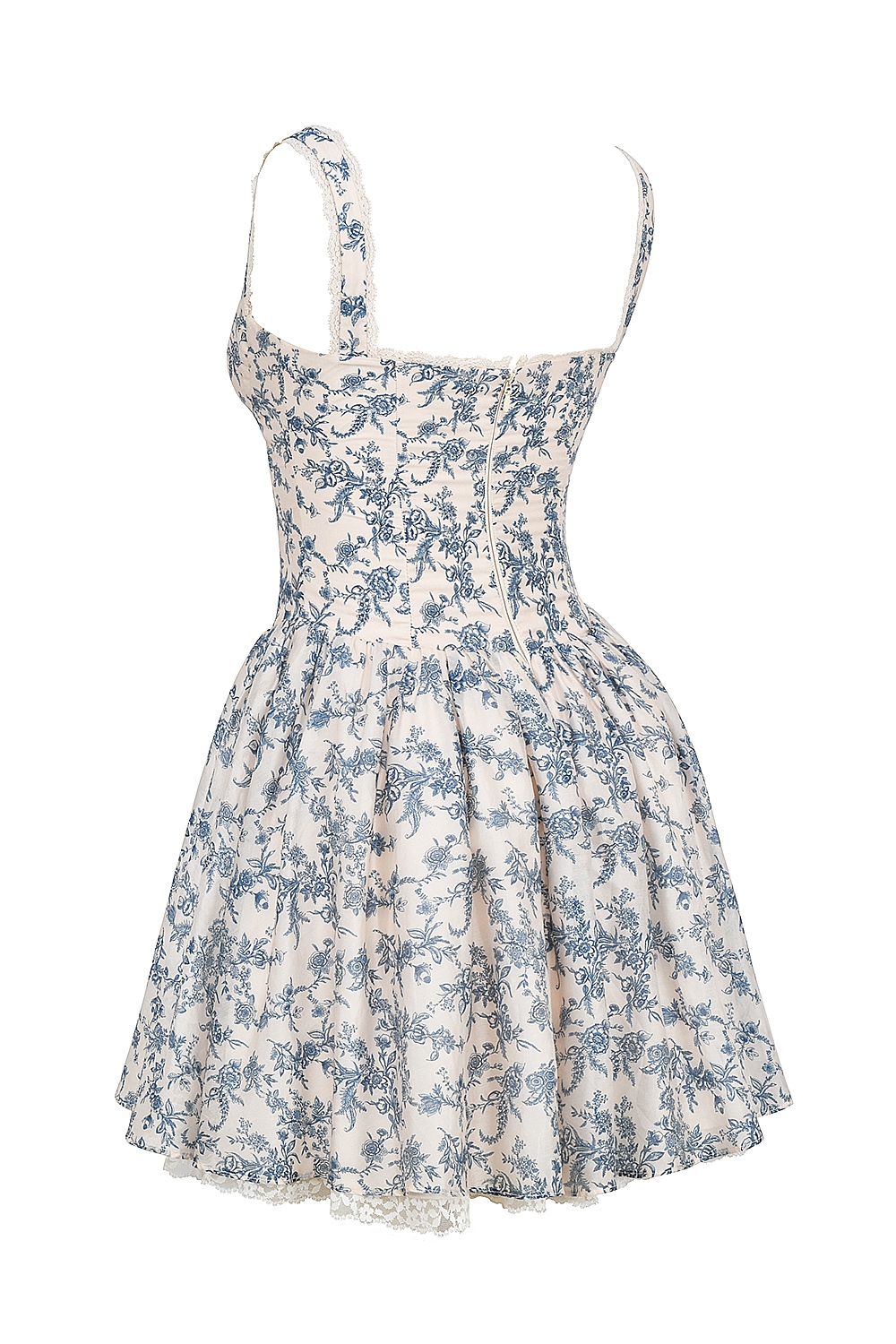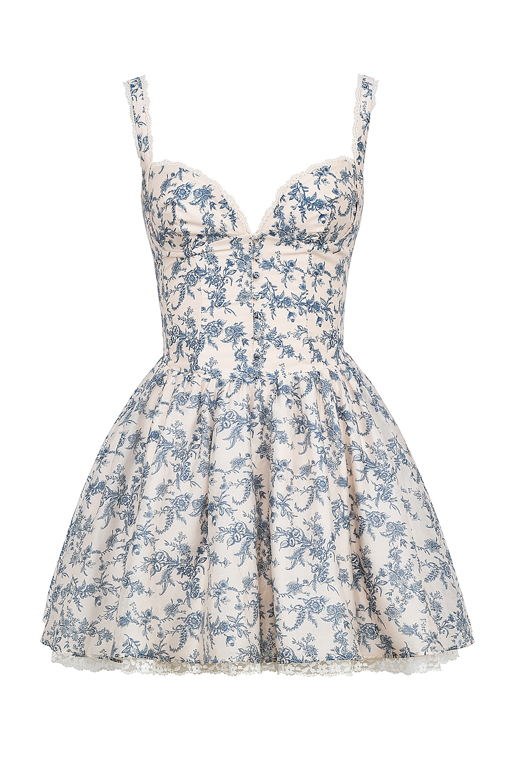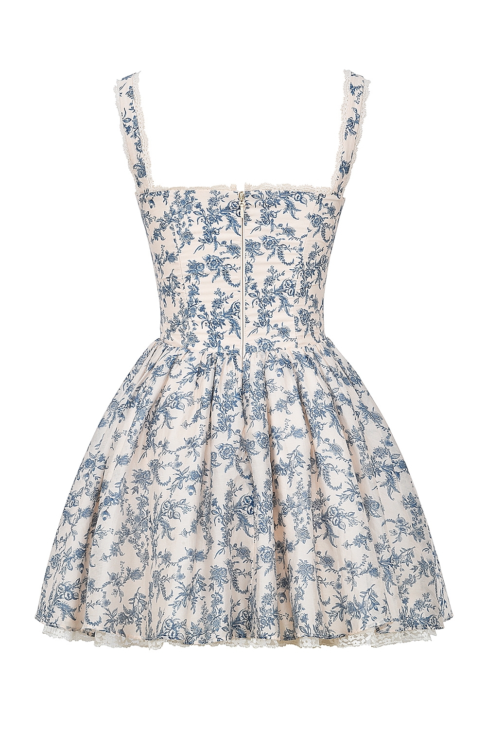 English Vintage Rose Print Puff Sleeve Mini Dress