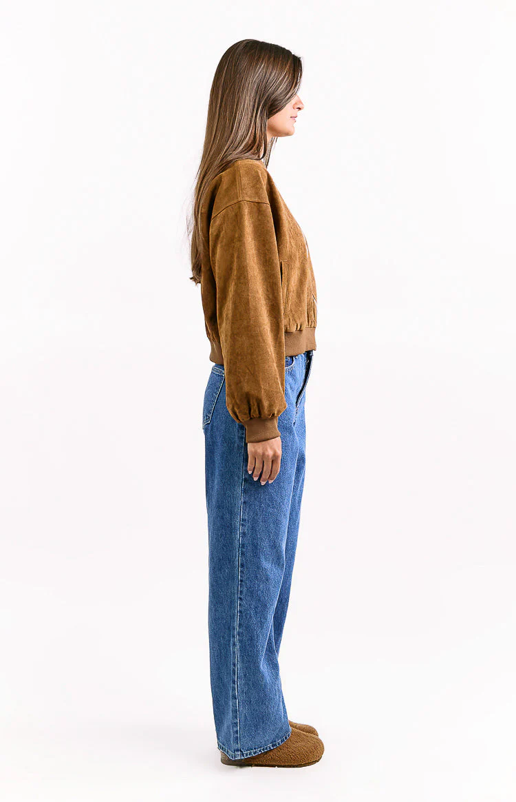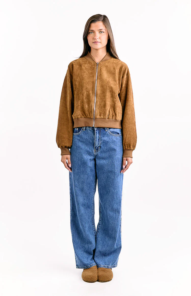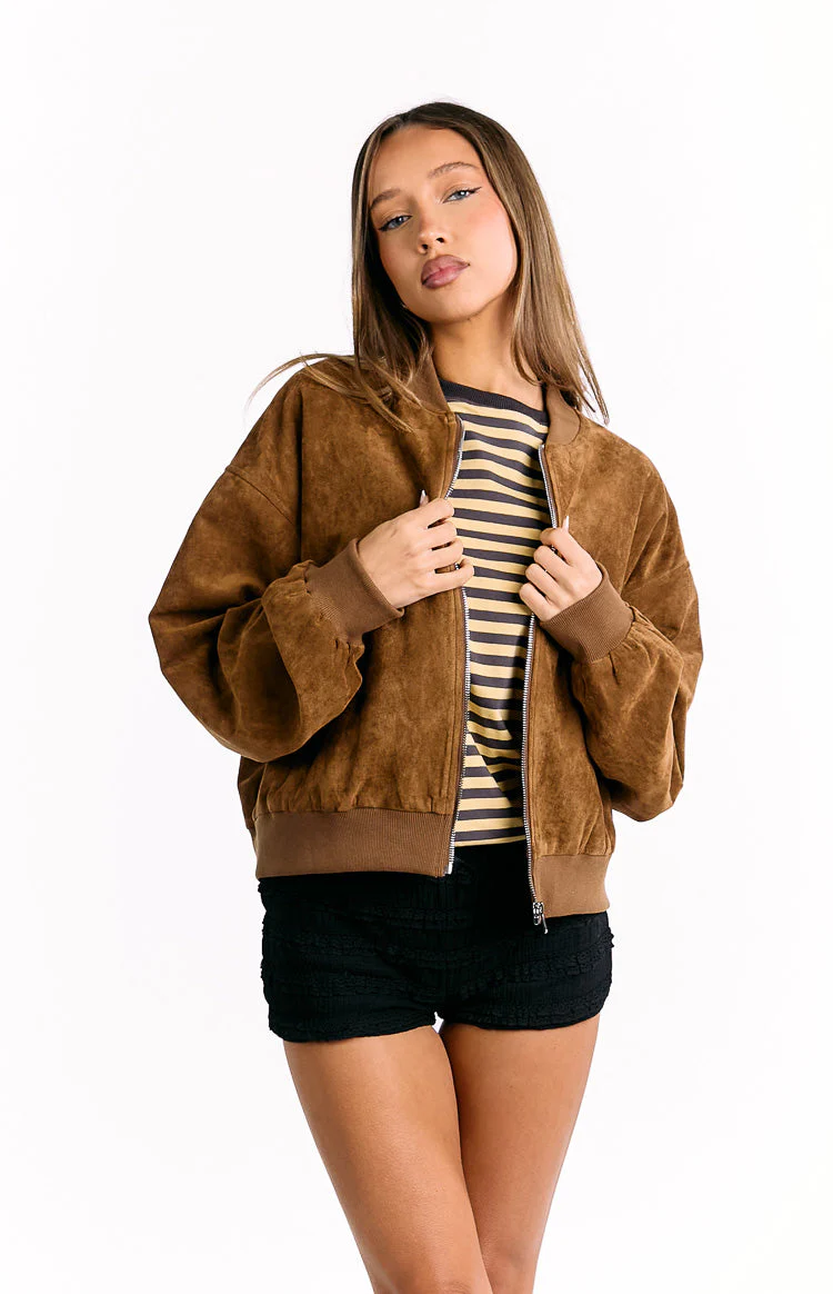 Rebecca Tan Cuffed Suedette Bomber Jacket