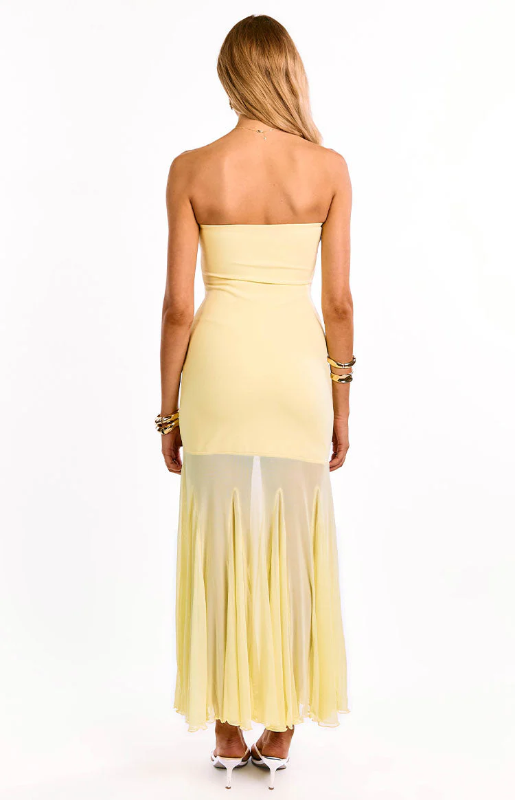 Adria Yellow Strapless Asymmetrical Formal Maxi Dress